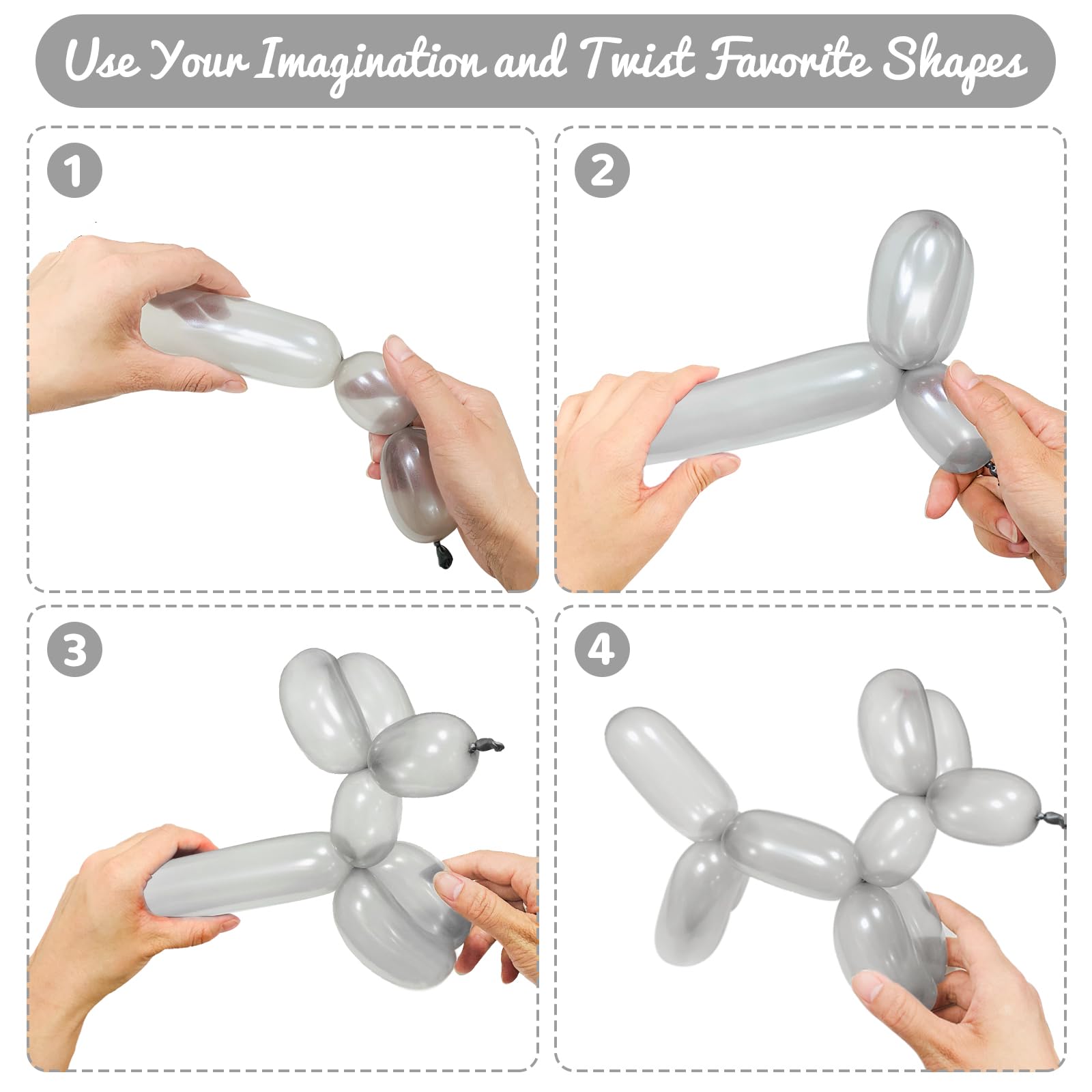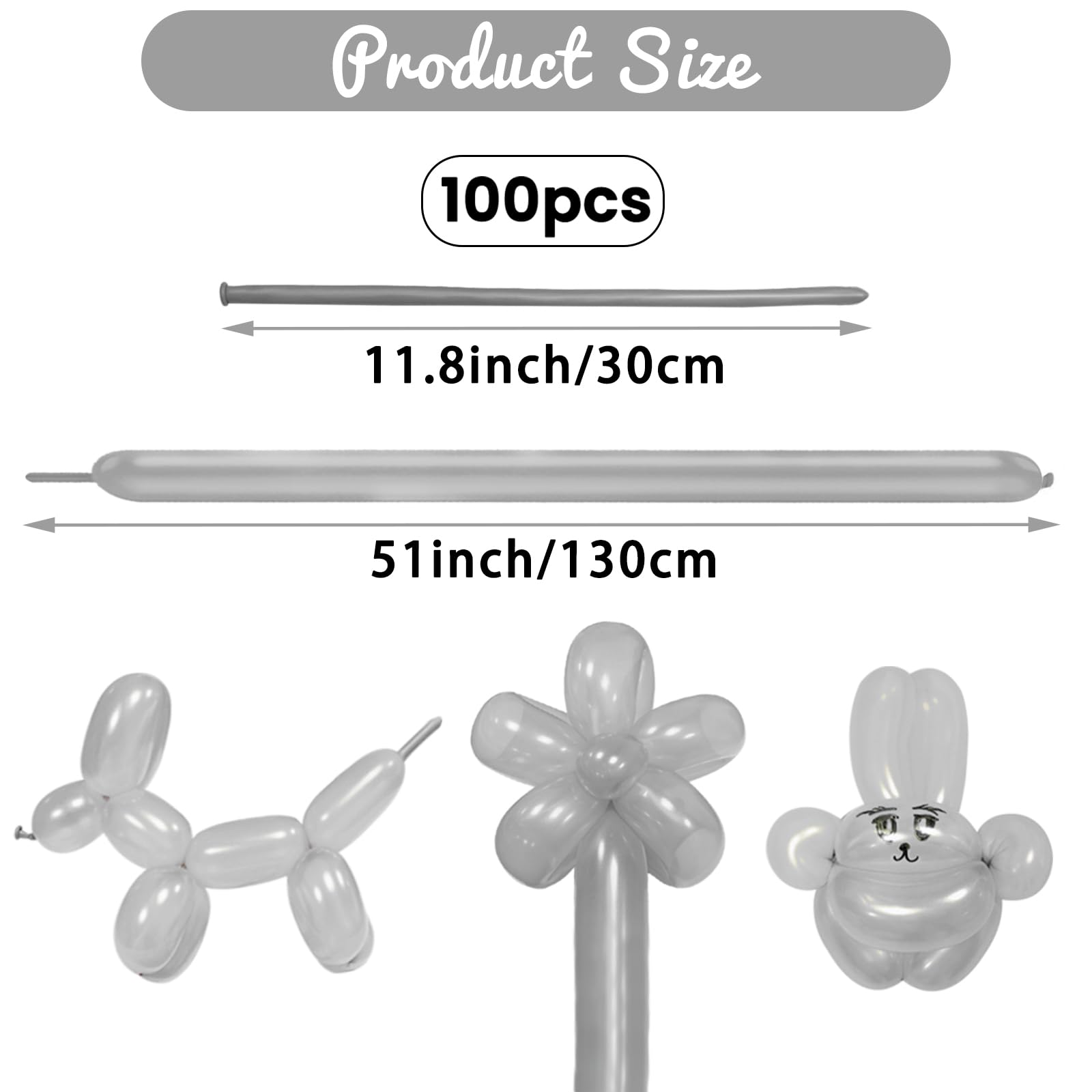 - Q: What are the dimensions of the 260Q silver balloons? A: The uninflated 260Q silver balloons measure approximately 5.1 inches in size. Once inflated, they become 2 inches wide and 60 inches long, making them ideal for various balloon twisting projects.