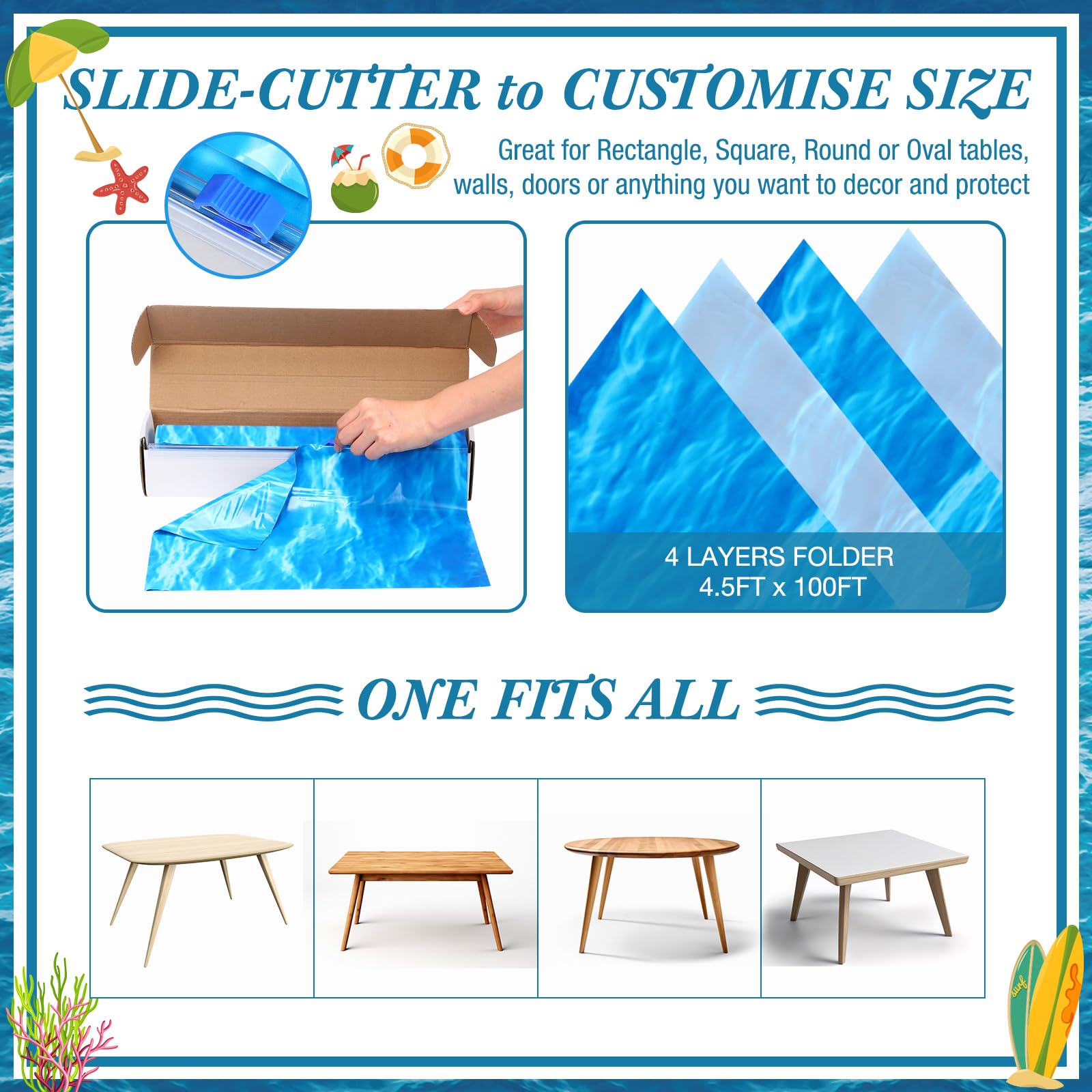 View compareIrenare 1 Roll Ocean Waves Plastic Tablecloth Ocean Table Cover Water Print Table Cover Ocean Sea Tablecloth Blue For Beach Pool Birthday Party Decoration Shower Supplies (54 Inch X 100Ft)