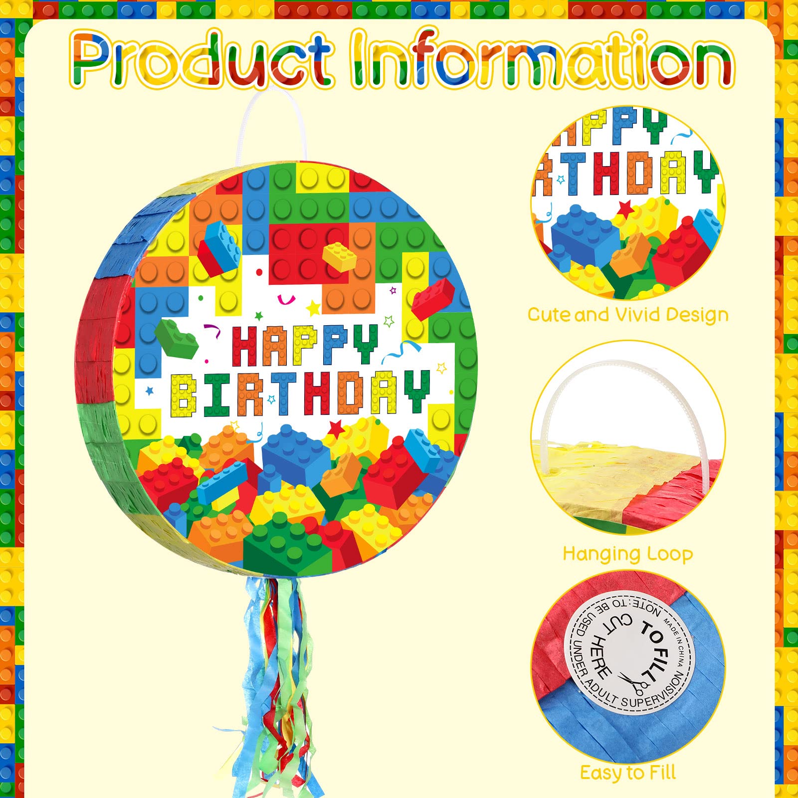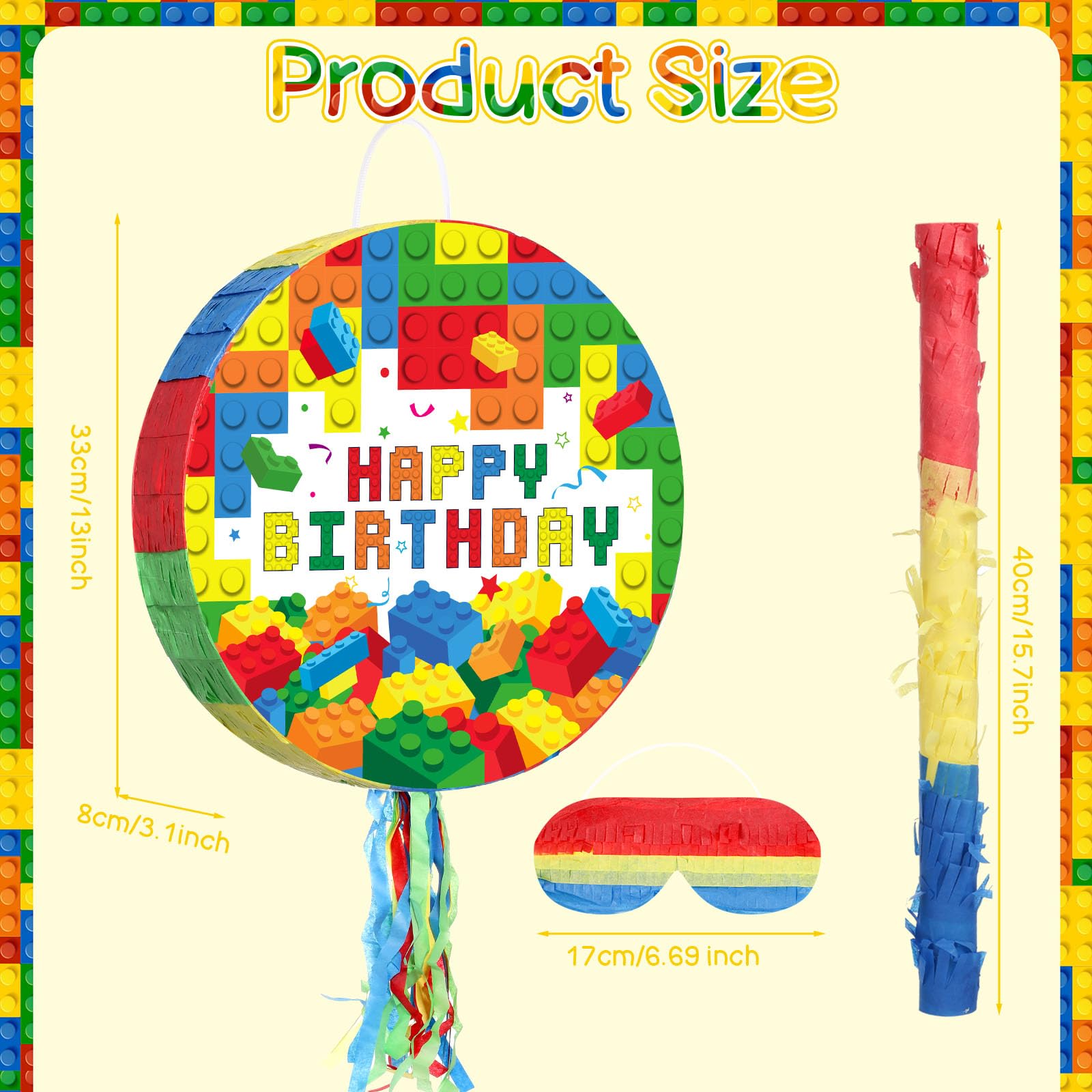 Jexine Building Blocks Piata Set Birthday Block Party Supplies Fiesta Piata Bundle with Blindfold Bat Stick Block Tassel Piata f