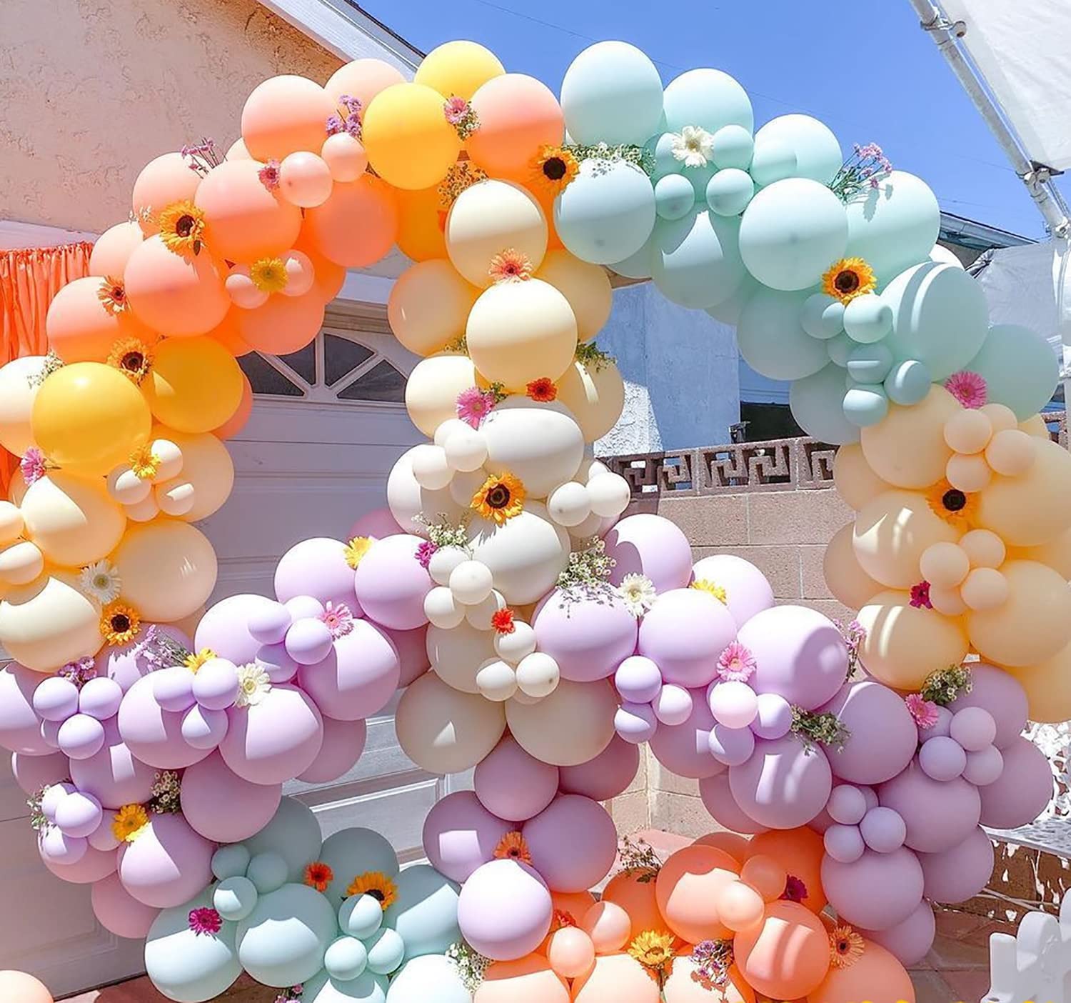 - Q: How many balloons are included in a package? A: Each package includes 10 pieces of 18-inch pastel orange balloons, along with a 32FT ribbon for your decorating needs.