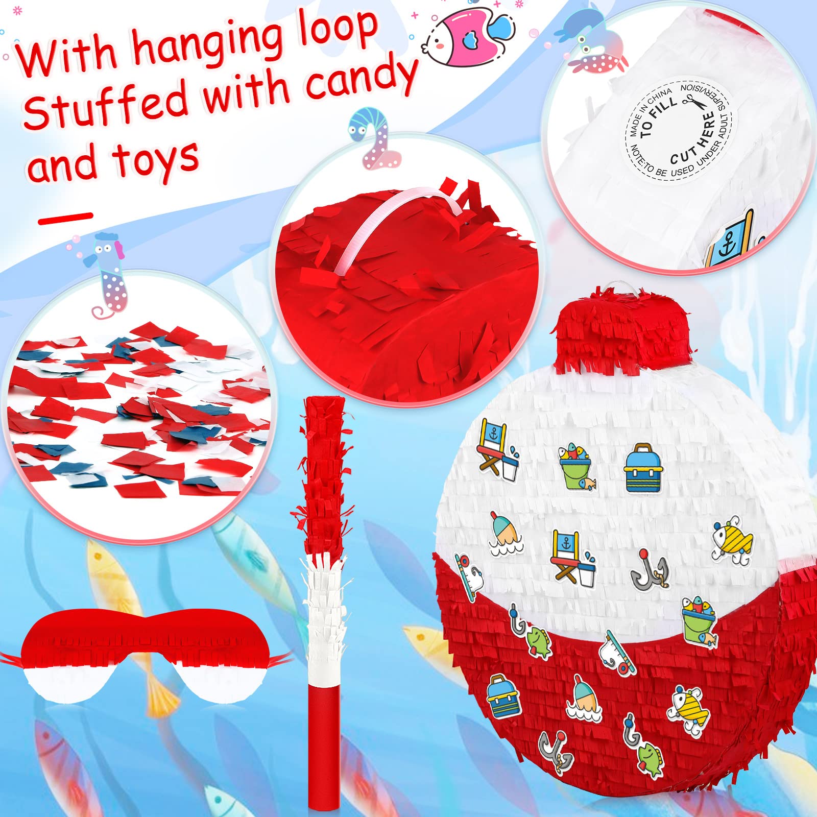 Large Fishing Bobber Piata 19.7 Inch Fishing Birthday Party Decorations Gone Party Supplies with a Blindfold and Bat Confetti St
