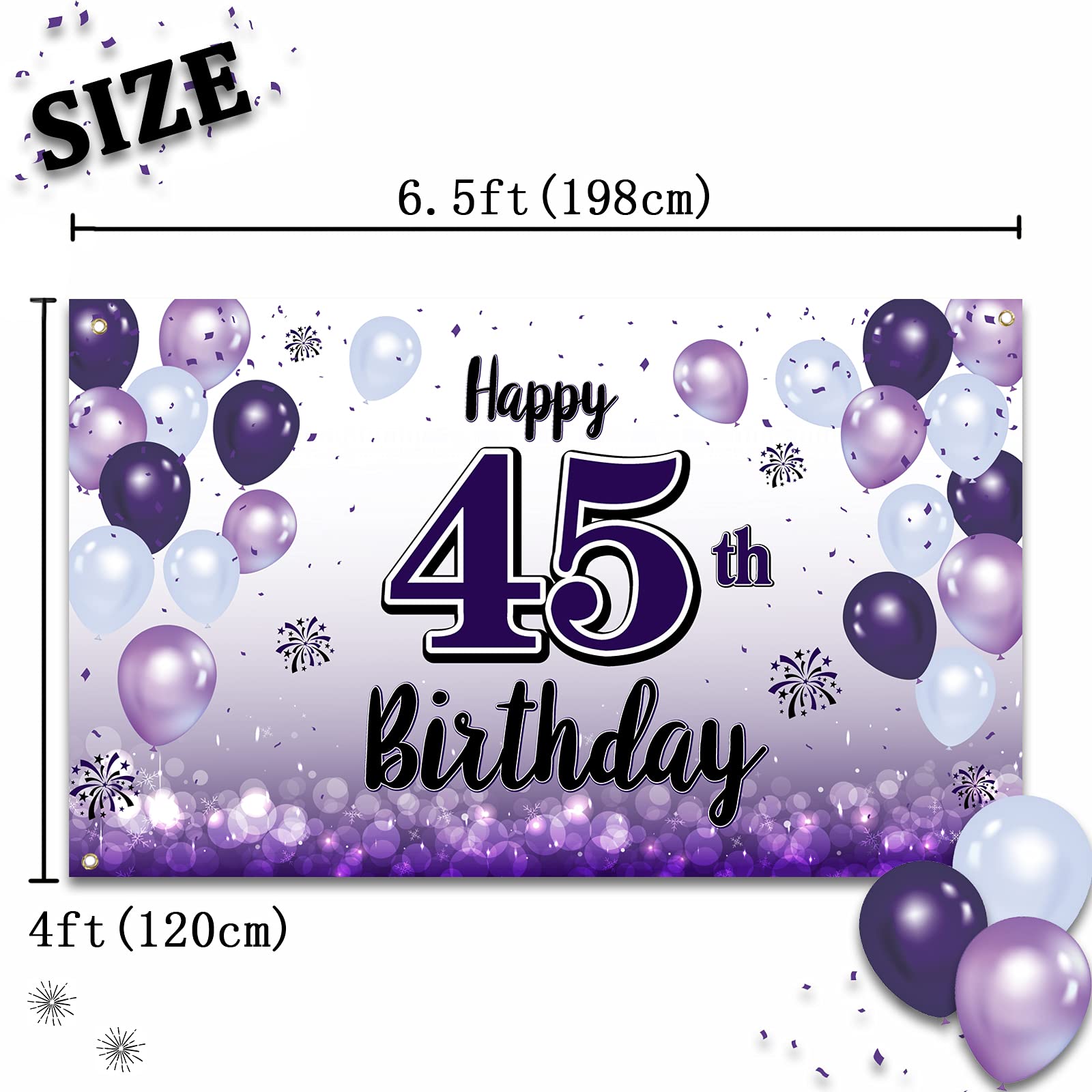 LASKYER Happy 45th Birthday Decorations,45th Purple Balloon Large Birthday Banner Backdrop Sign,45 Years Old Bday Party Supplies