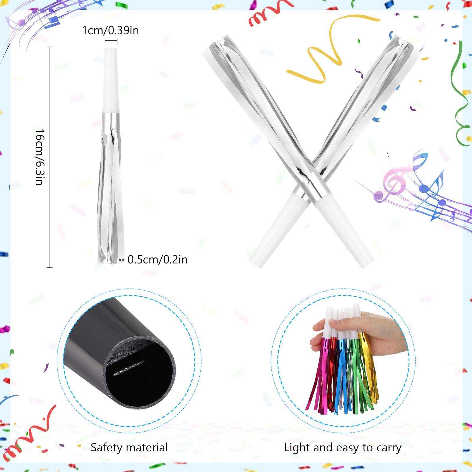 LCPQMZGH 60 Pcs Gold Noise Makers, Metallic Fringed Noise Makers for New Year Party Favor Supplies (Silver White)