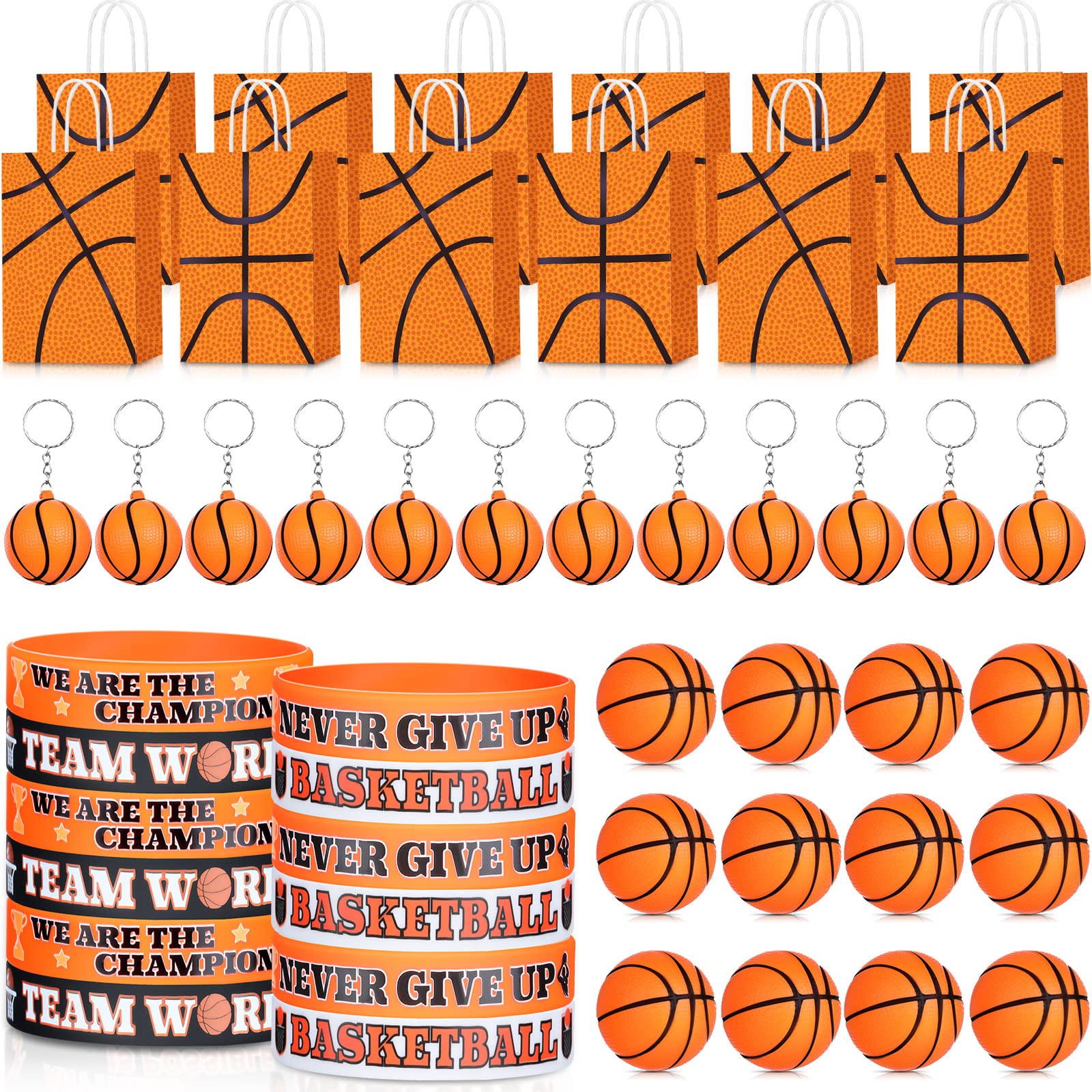 Leinuosen 48 Pcs Basketball Party Favors Supplies Including 12 Basketball Party Gift Bags 12 Mini Basketball Stress Balls 12 Bas