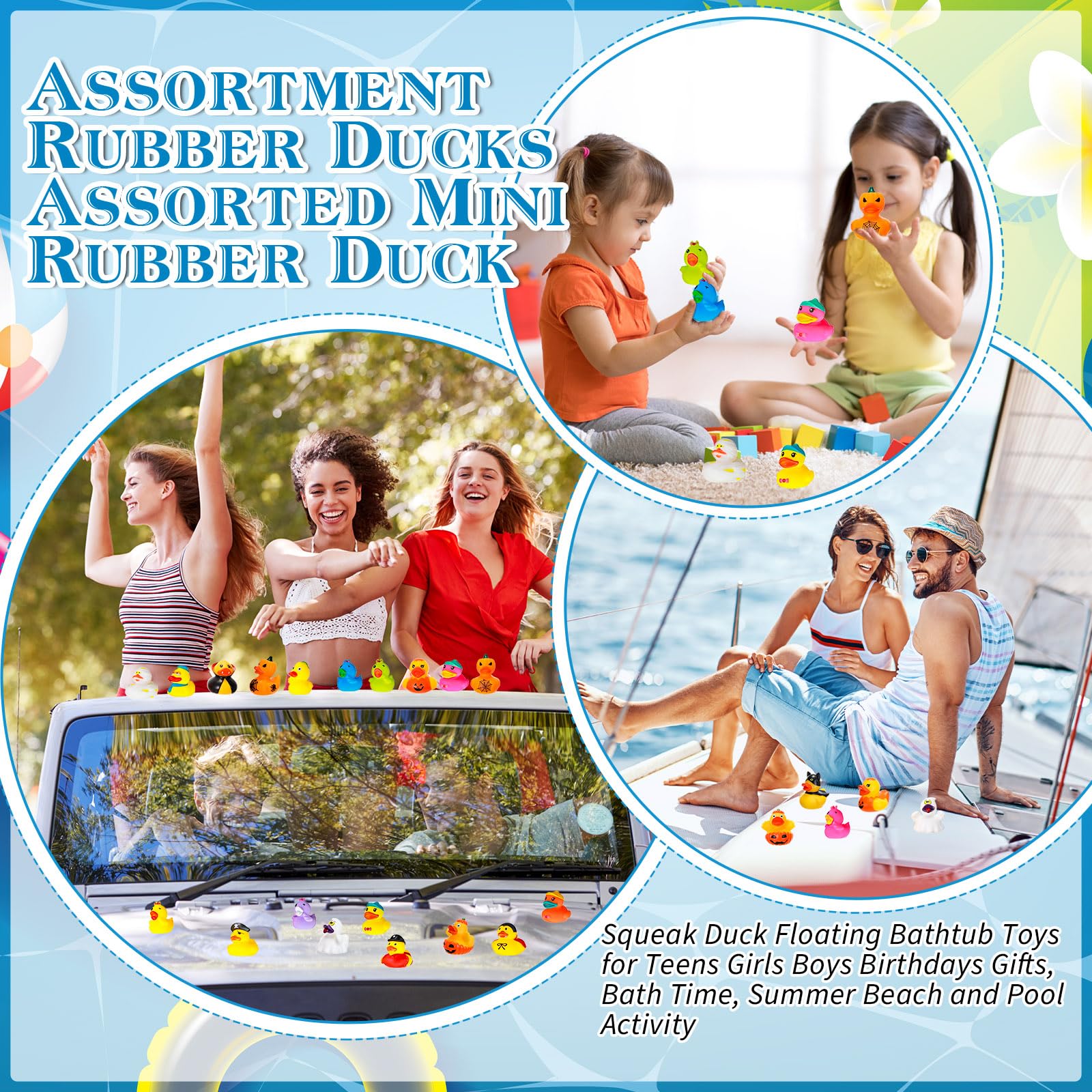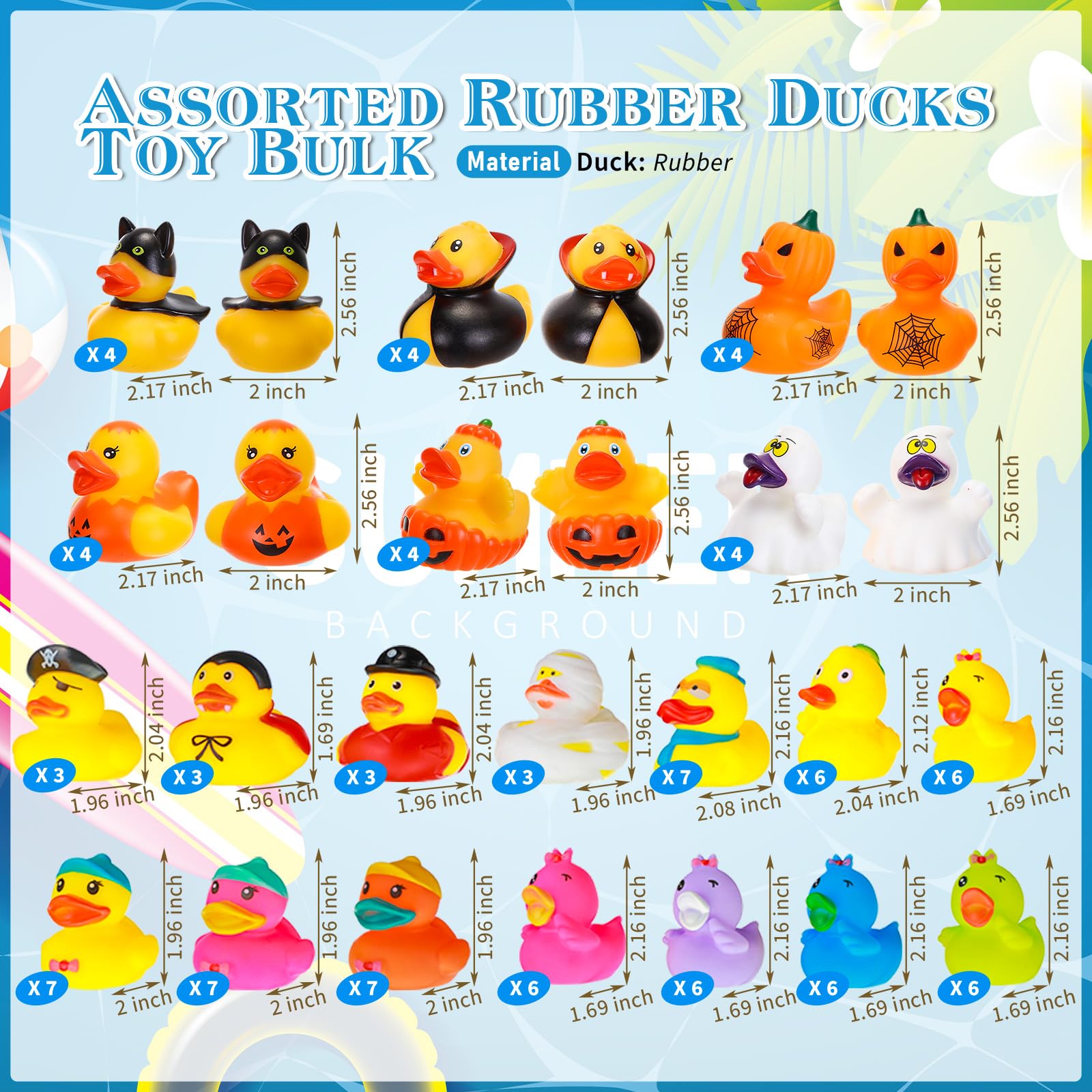 View compareLeyndo 100 Pcs 2'' Rubber Ducks Party Favors Assorted Toy Bulk Mini Floater For Kids Trick Or Treat Supplies Goodie Bag Fillers
