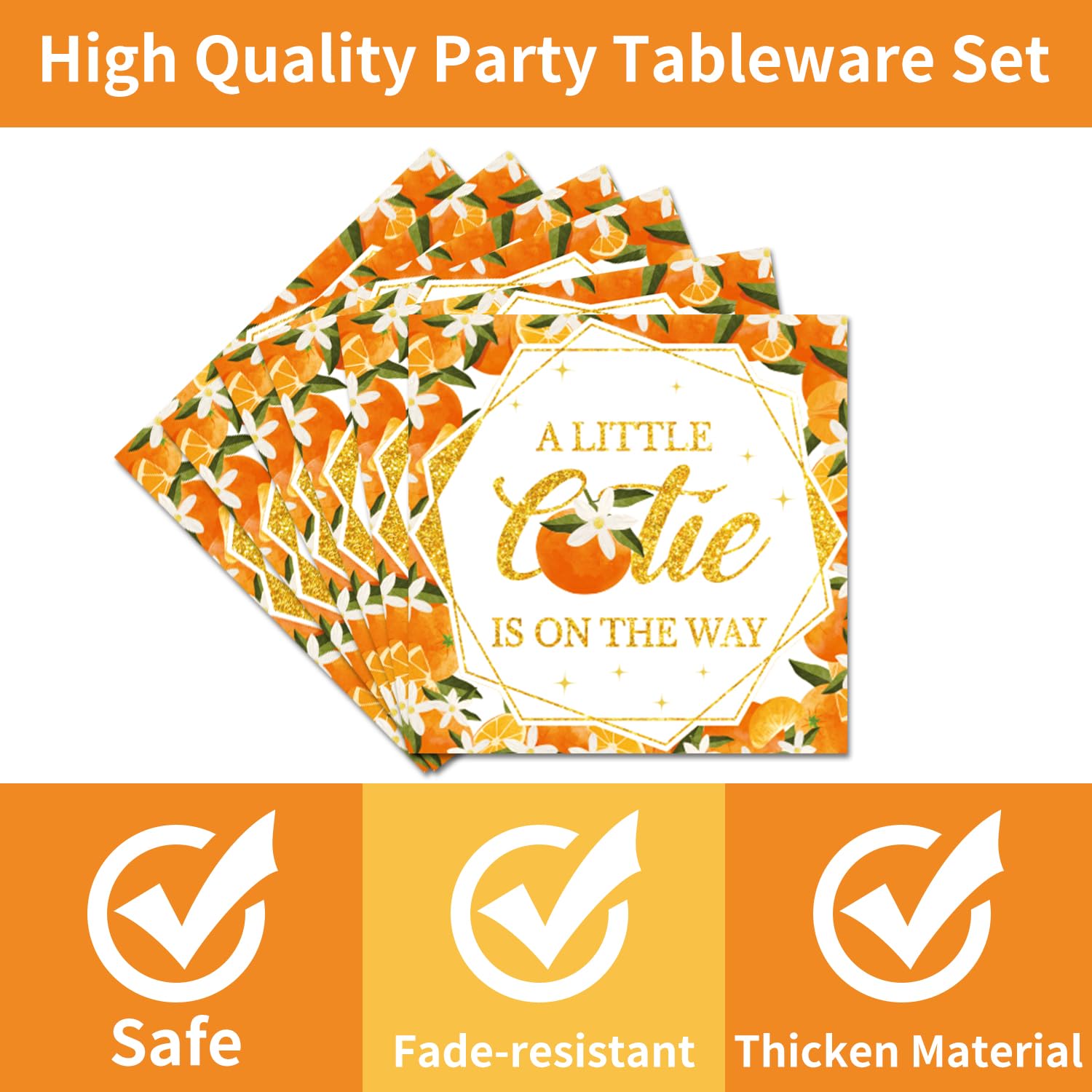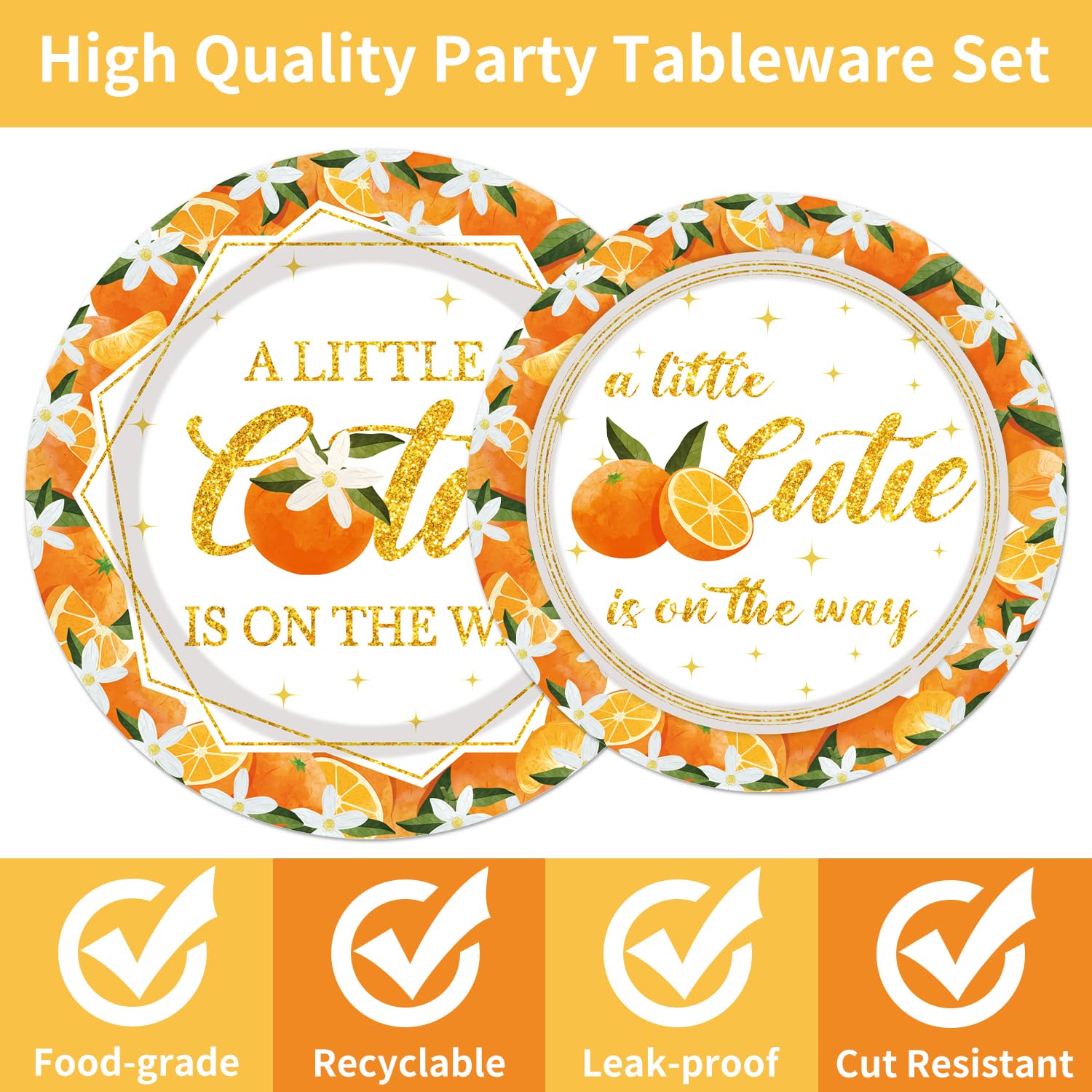 Little Cutie Baby Shower Decorations - 96PCS A Little Cutie Is on the Way Plates and Napkins Party Supplies Orange Tangerine Citrus Baby Shower Disposable Paper Tableware Set Serves 24 Guests