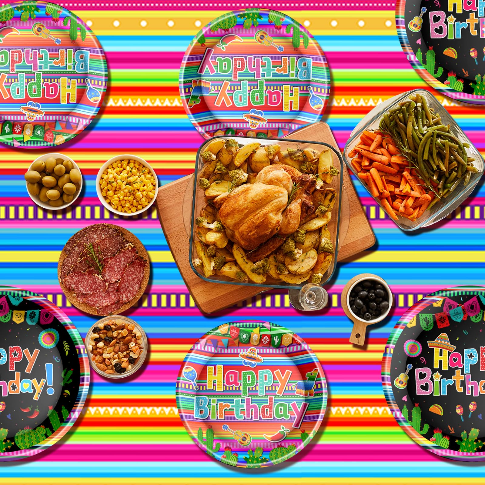 Mexican Fiesta Party Supplies Tableware Set Mexican Cinco De Mayo Themed Tableware with Paper Plates Napkins Cups Tablecloth Ban