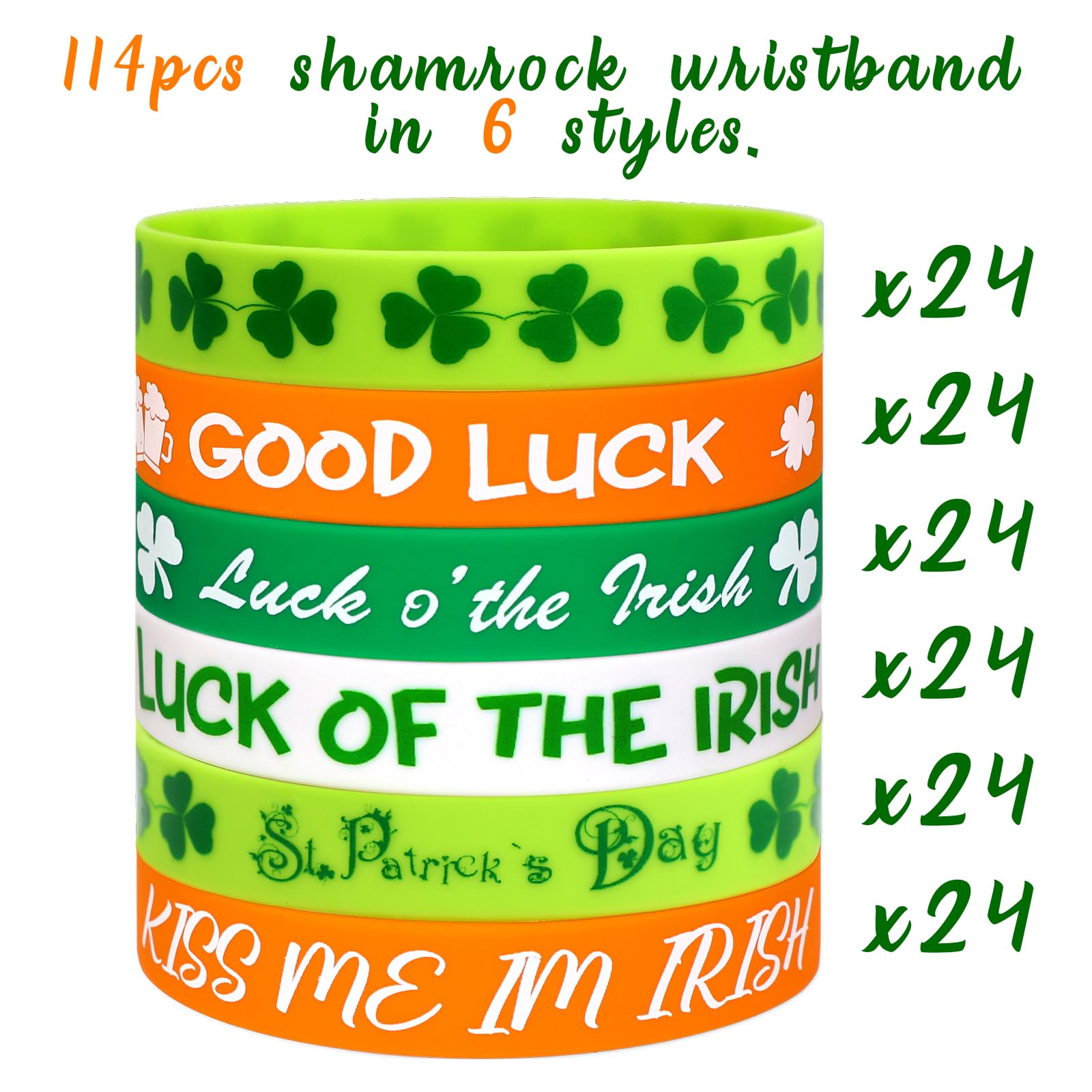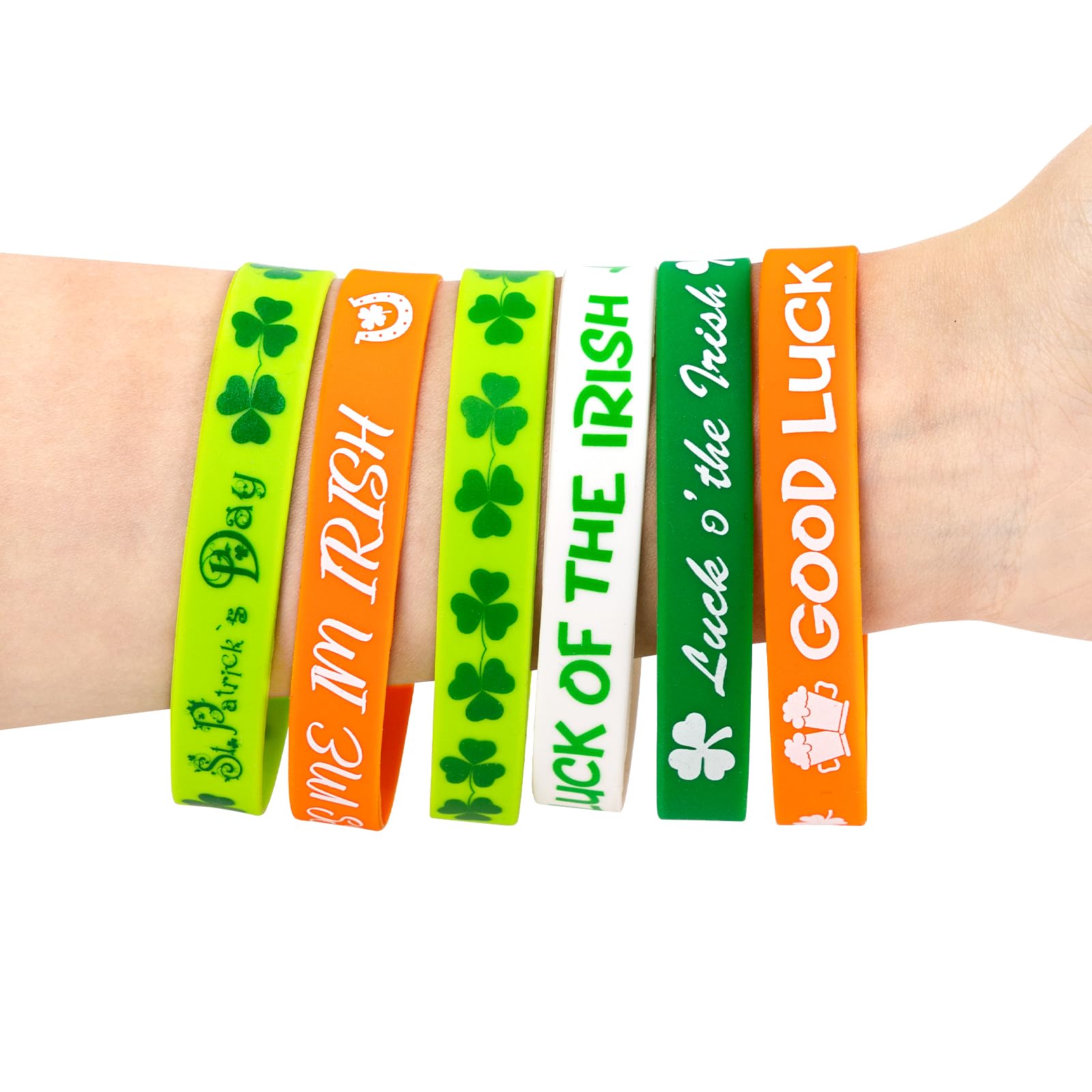 Moon Boat 144Pcs St. Patrick'S Day Shamrock Rubber Wristbands Bracelets - Party Favors Supplies Gifts Decorations, 6 Styles