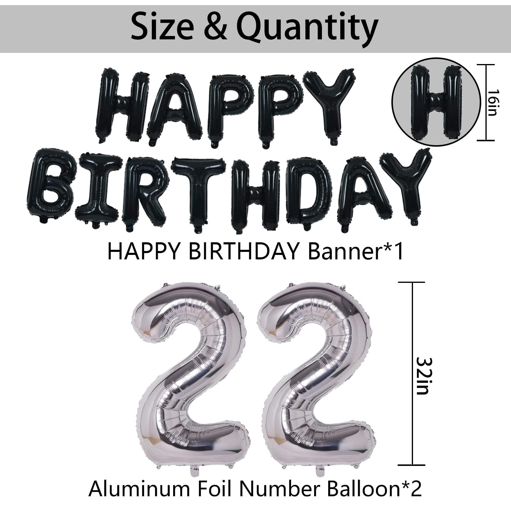 Naninuneno 22Nd Black Silver Birthday Party Decorations For Men Women, Happy 22 Birthday Party Supplies With Black Happy Birthda