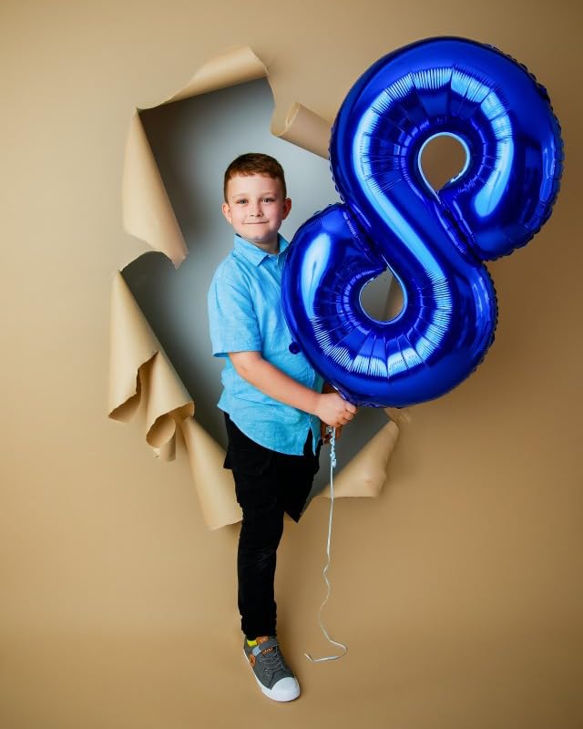 Navy Blue 8 Balloon, Number Balloon 40 Inch , Blue Birthday Decorations, 8 18 28 38 80 Birthday Balloons, 8Th Blue Party Supplies, Number 8 Balloon