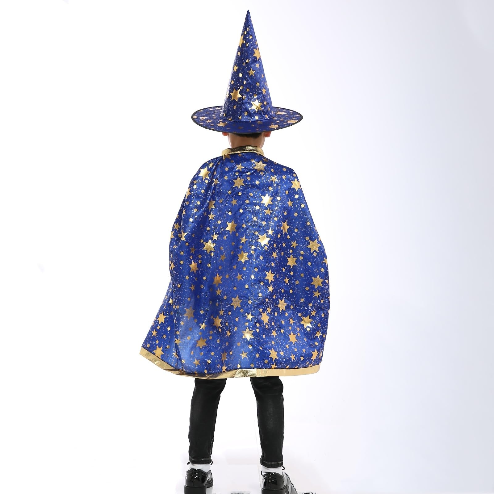 Newland Wizard Costume Kids,3-10 Years Wizard Cape And Hat,Kids Cloak Dress Up Party Supplies For Halloween Christmas Cosplay