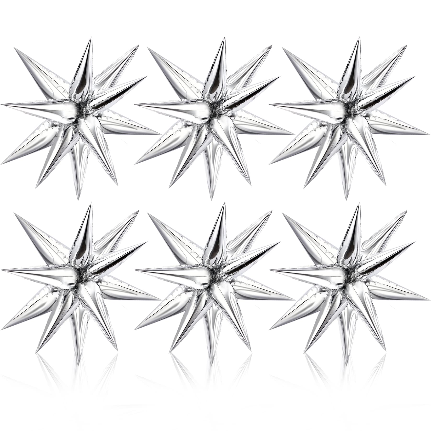 View compareNovwang 75 Pcs Explosion Star Foil Balloons 12 Point Silver Starburst Cone Mylar Balloons For Party Supplies Christmas Birthday Wedding Baby Shower Photo Booth (Silver)