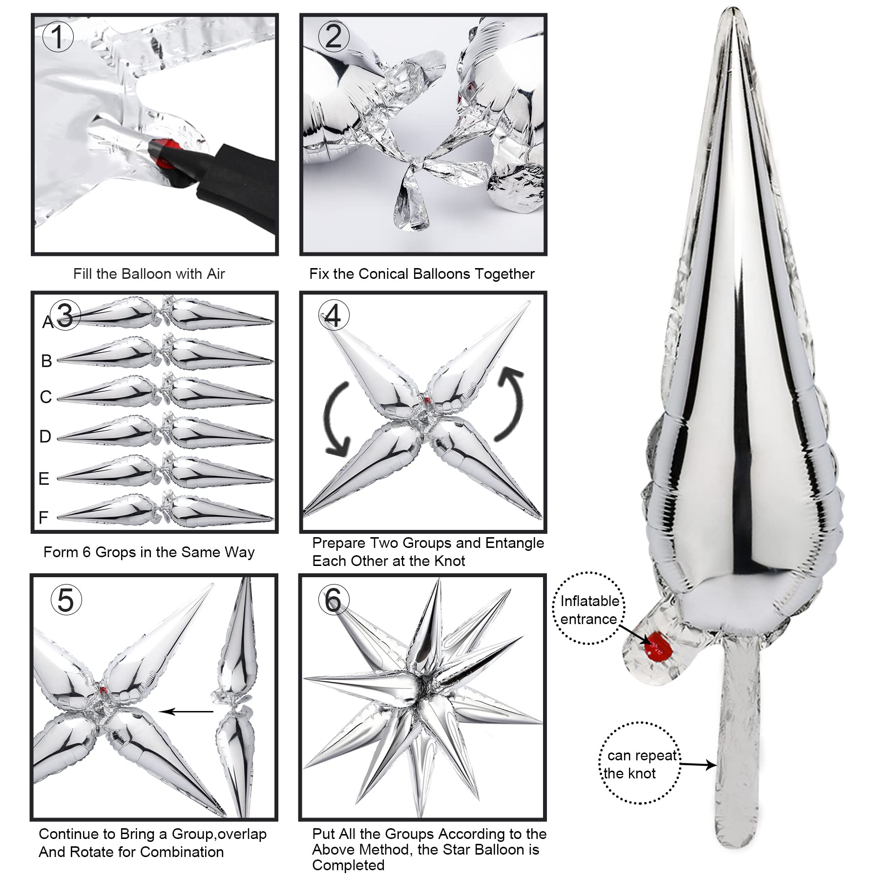 - Q: How do I inflate the starburst balloons? A: These starburst balloons feature a self-sealing design, allowing you to easily inflate them with an air pump or helium. Inflate the balloons to about 80%-90% for the best results.