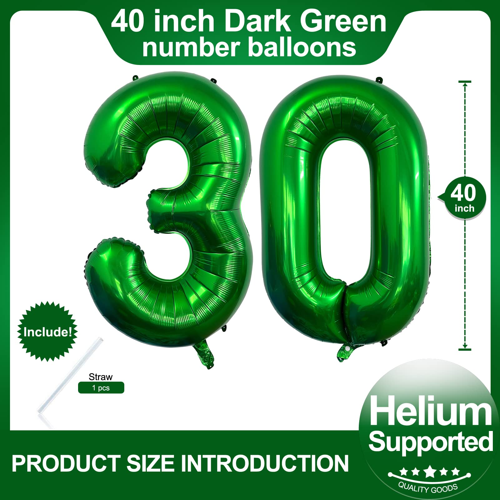 Number 30 Dark Green Balloons 40 Inch Giant Green 30 Numer Foil Helium Balloons For 30Th Green Birthday Party Supplies 30Th Anni