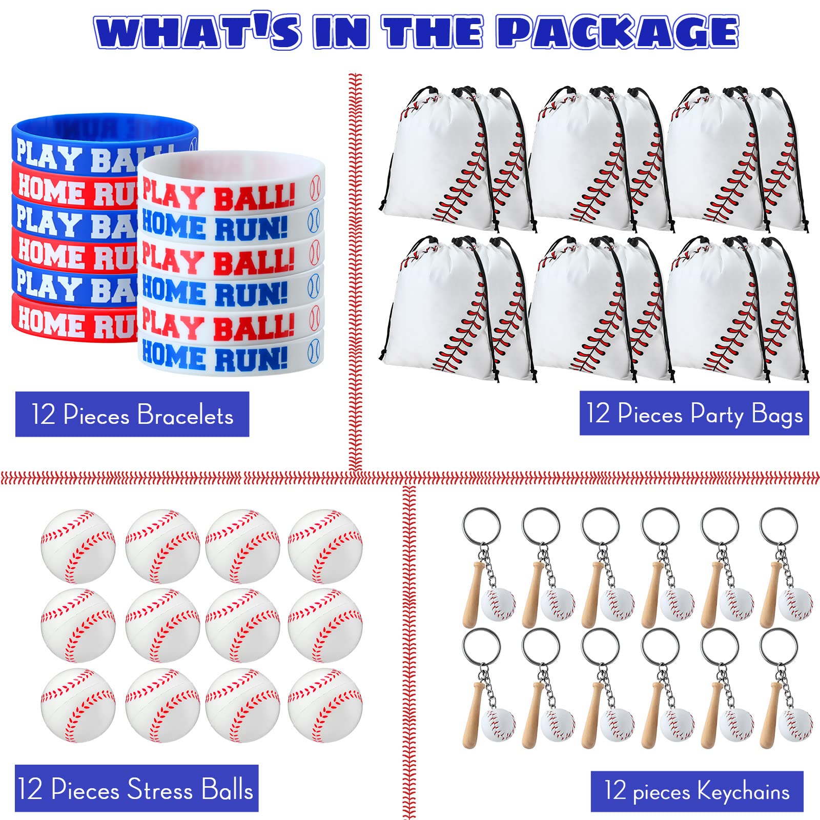 Nuogo 48 Pcs Baseball Party Favors Supplies Include 12 Pcs Baseball Party Bags 12 Pcs Baseball Bracelets 12 Pcs Baseball Stress