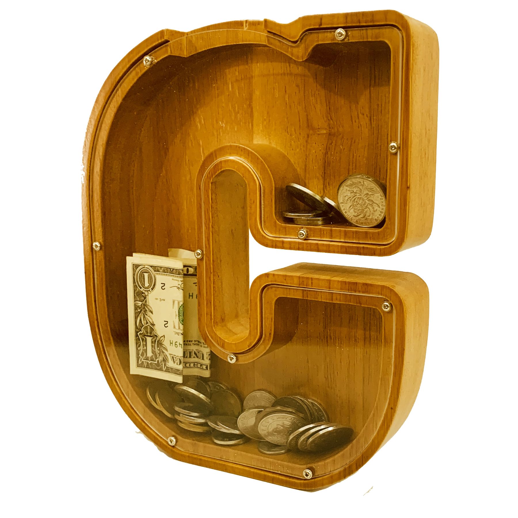 Personalized wooden letter piggy bank for boys and girls with children's letters, customized laser engraved names, creative letter piggy bank, piggy bank for children's birthday gifts, Christmas