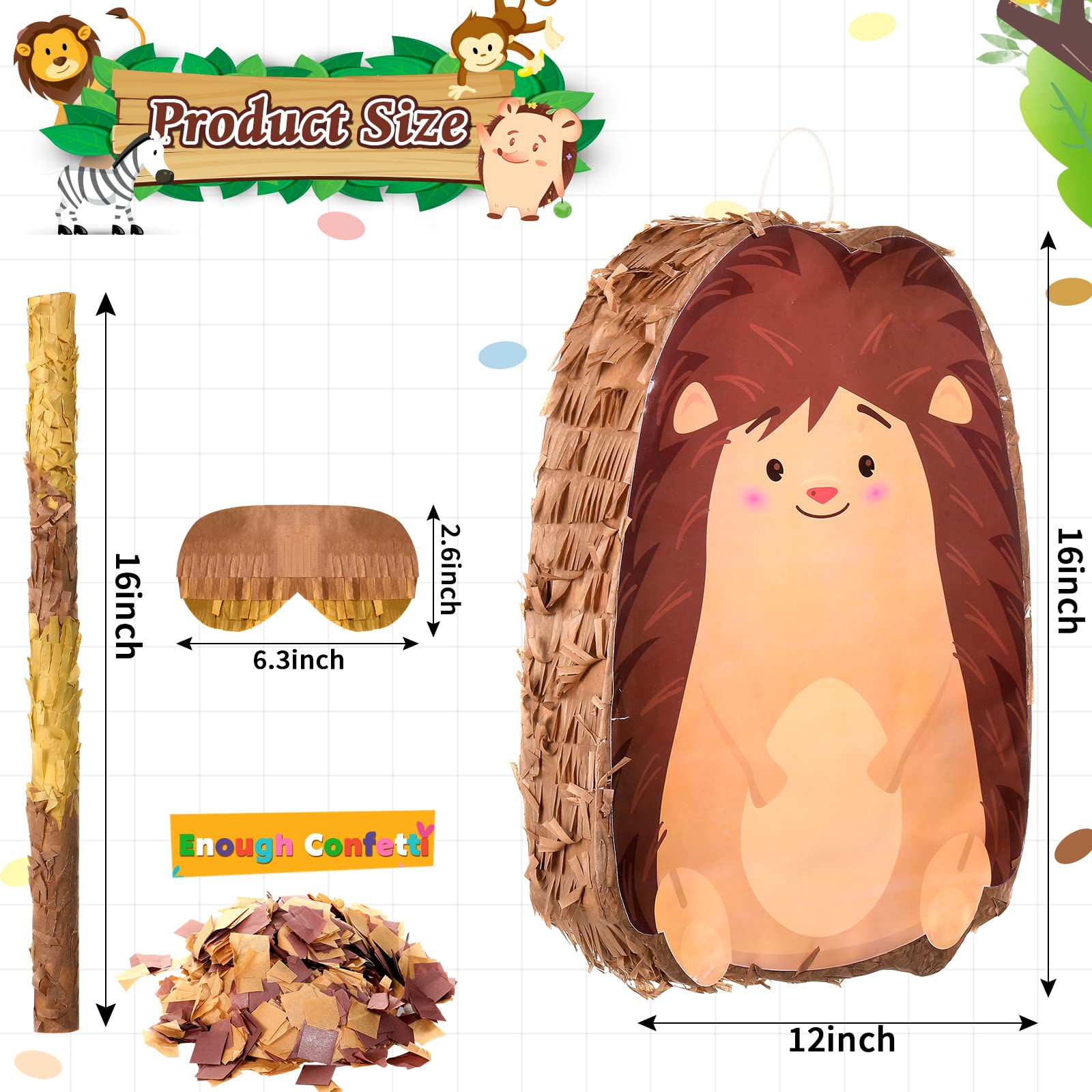 Piñata Bundle With A Blindfold And Bat (16 X 12 X 3 Inches), Cute Animal Piñata For Girls Boys Kids Birthday Party Toys Decoration For Animal Theme Birthday Party Game Supplies Photo Prop(Hedgehog)