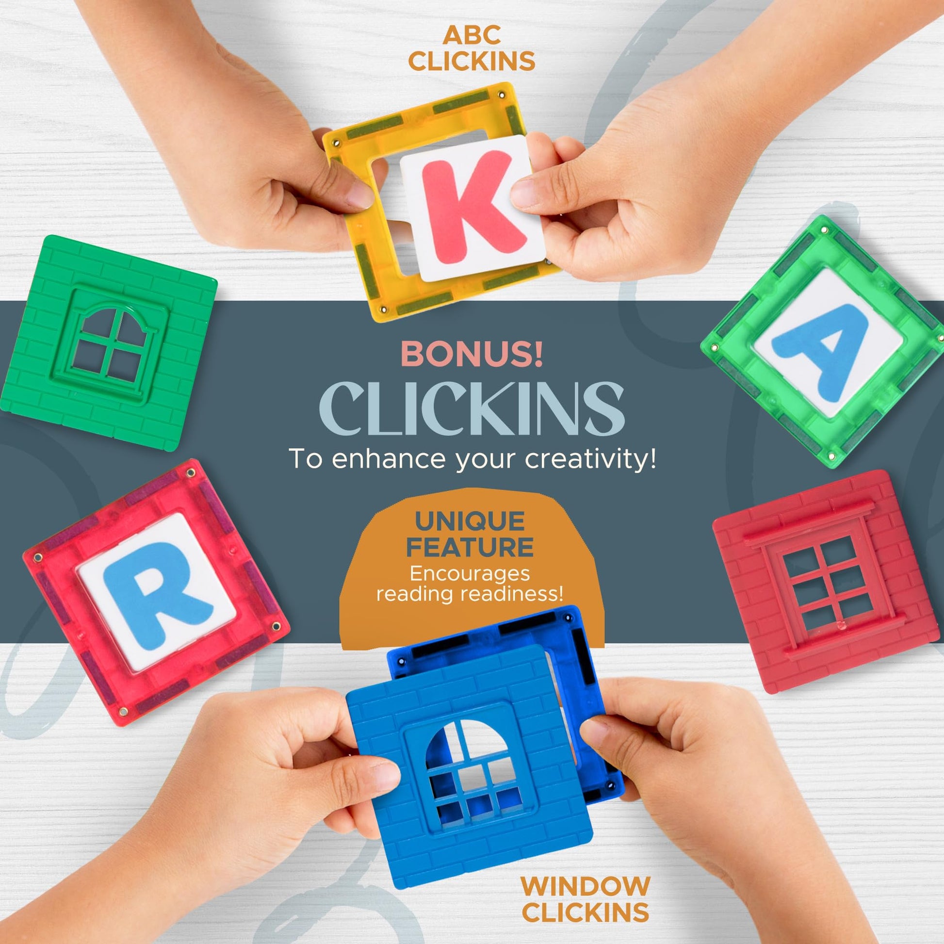 150 PIECE MAGNETIC TILE PLAY SET: Your child's engineering outcomes are endless with these colorful 3D magnet tiles from Playmags! Draw inspiration from the Idea Book or build something totally unique with dozens of different magnetic building blocks to choose from! | STRONGER, SMARTER MAGNETIC BLOCKS: Includes 132 Magnetic tiles with Exclusive SUPERMAGS; Strong, Durable Magnets are Great for Building Tall 3D Structures Playmags are the only magnets for kids with SUPERMAGS and Clickins to our name! Super strong magnets guarantee super sturdy structures, while alphabet letters click in to windows to inspire extra creativity! | IMAGINE, ENGINEER, LEARN: Convert imagination into 3D sculptures with these STEM toys for girls and boys! Easily connecting tiles facilitate skills in basic geometry, architecture, and engineering! Thanks to diverse shapes, colors, and even the ABCs, learning opportunities are abundant. | KIDS TOYS WITH A PURPOSE: With these construction toys, your child will build more than just a tower. Theyll build ingenuity, creativity, and confidence, too! Playmags are the perfect magnetic toys for toddlers ages 3+! | OUR PROMISE TO PARENTS: As the winner of multiple awards and recognition, Playmags are durable, high quality, and kid-safe. To ensure you're as happy purchasing Playmags as your child is building with them, your 100-piece set includes a 1-year warranty!