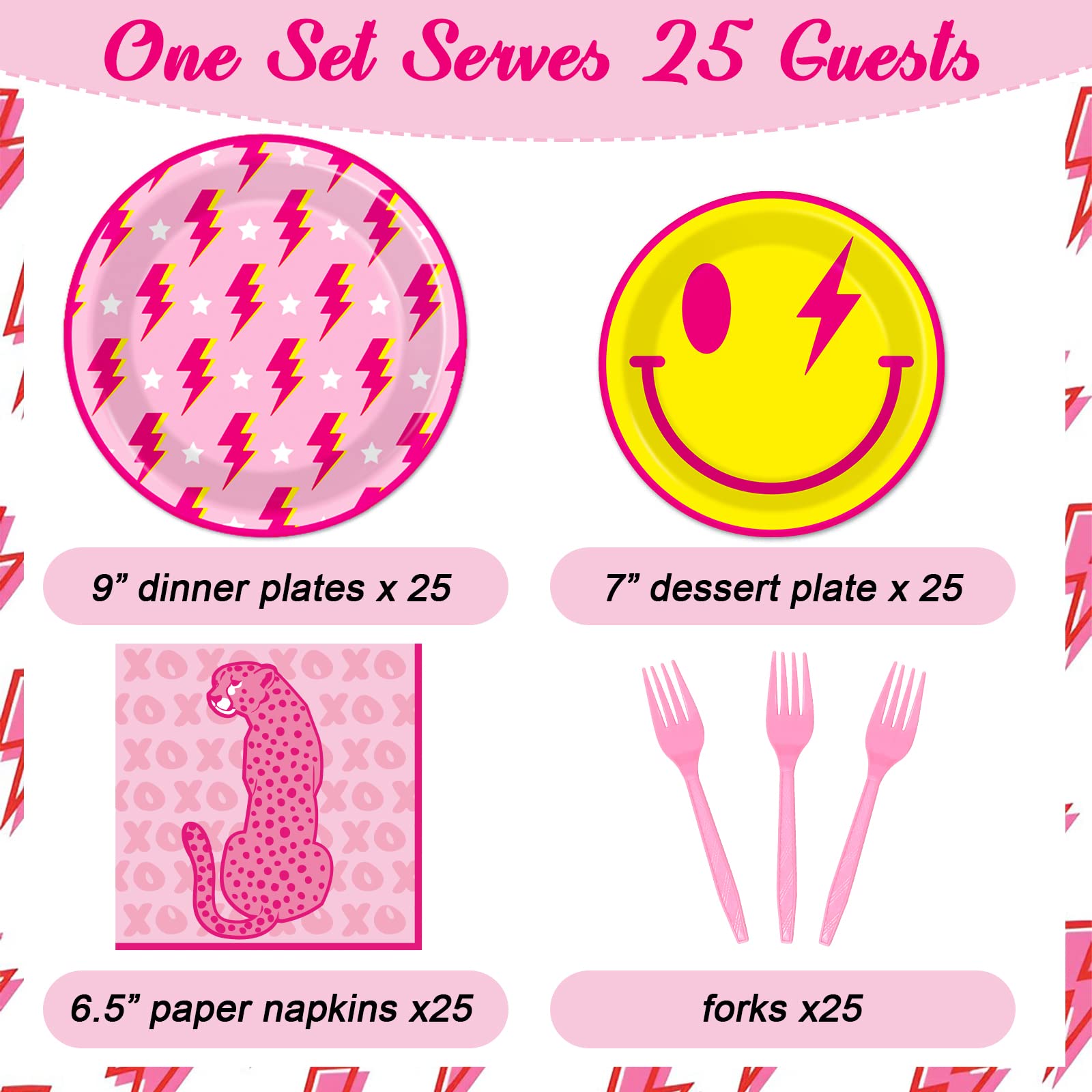 - Q: What is included in the Qyeahkj preppy party supplies set? A: The Qyeahkj preppy party supplies set includes 100 pieces: 50 paper plates in two sizes (25 large 9" plates and 25 small 7" plates), 25 preppy birthday napkins, and 25 forks, making it perfect for serving up to 25 guests.