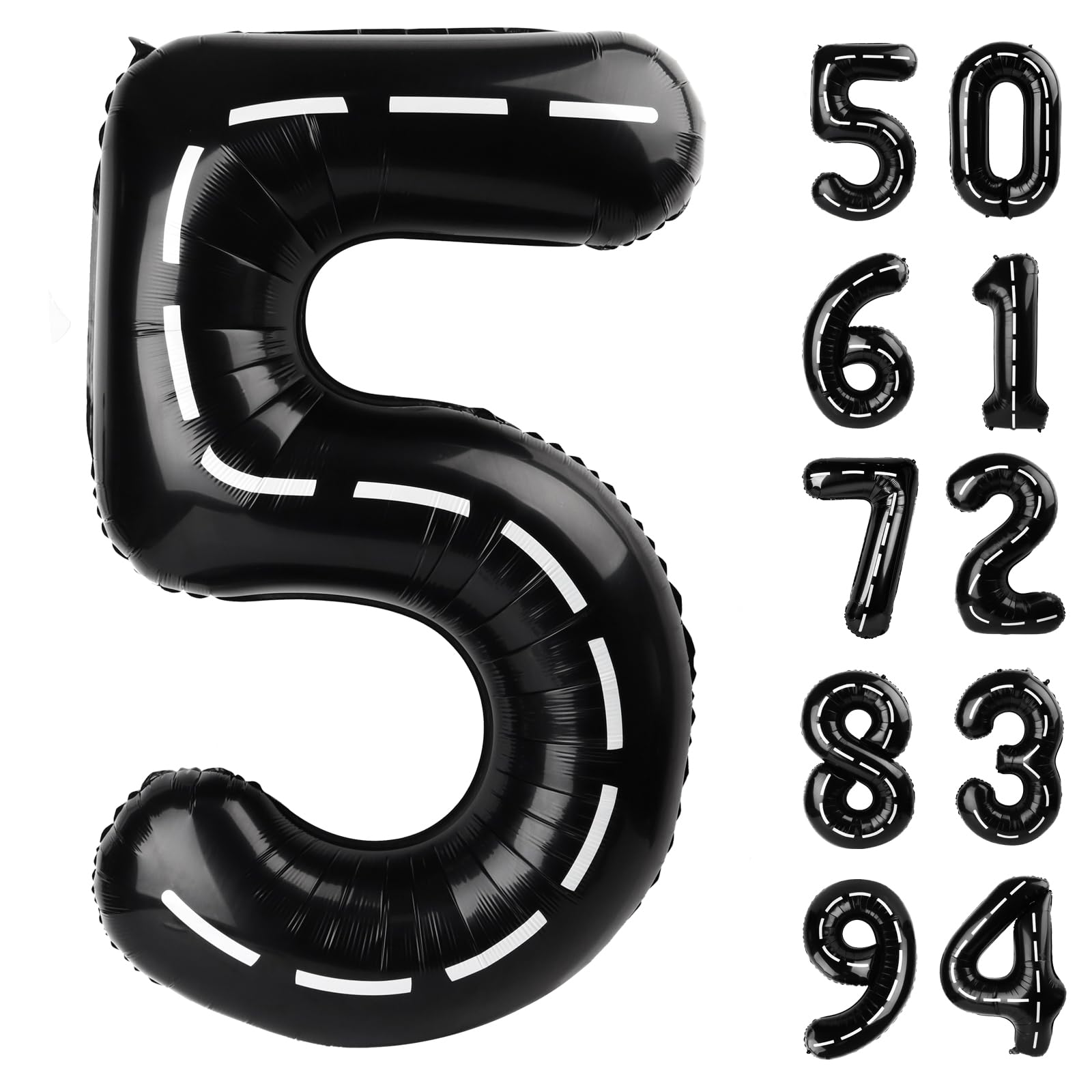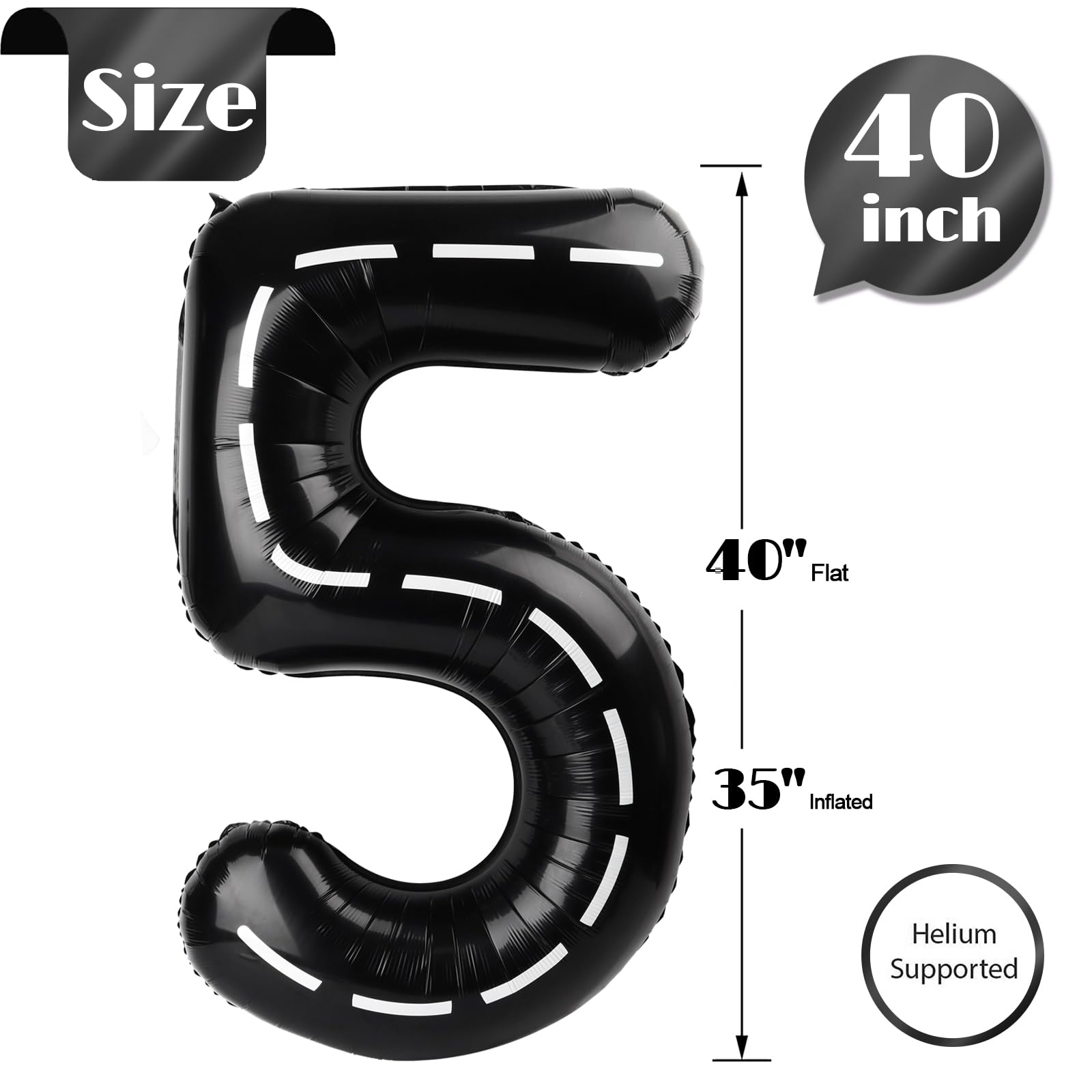 Race Car 5 Balloon, Number Balloons 40 Inch, 5Th Black Birthday Balloon Decorations, Race Car Birthday Party Supplies, 5 Number