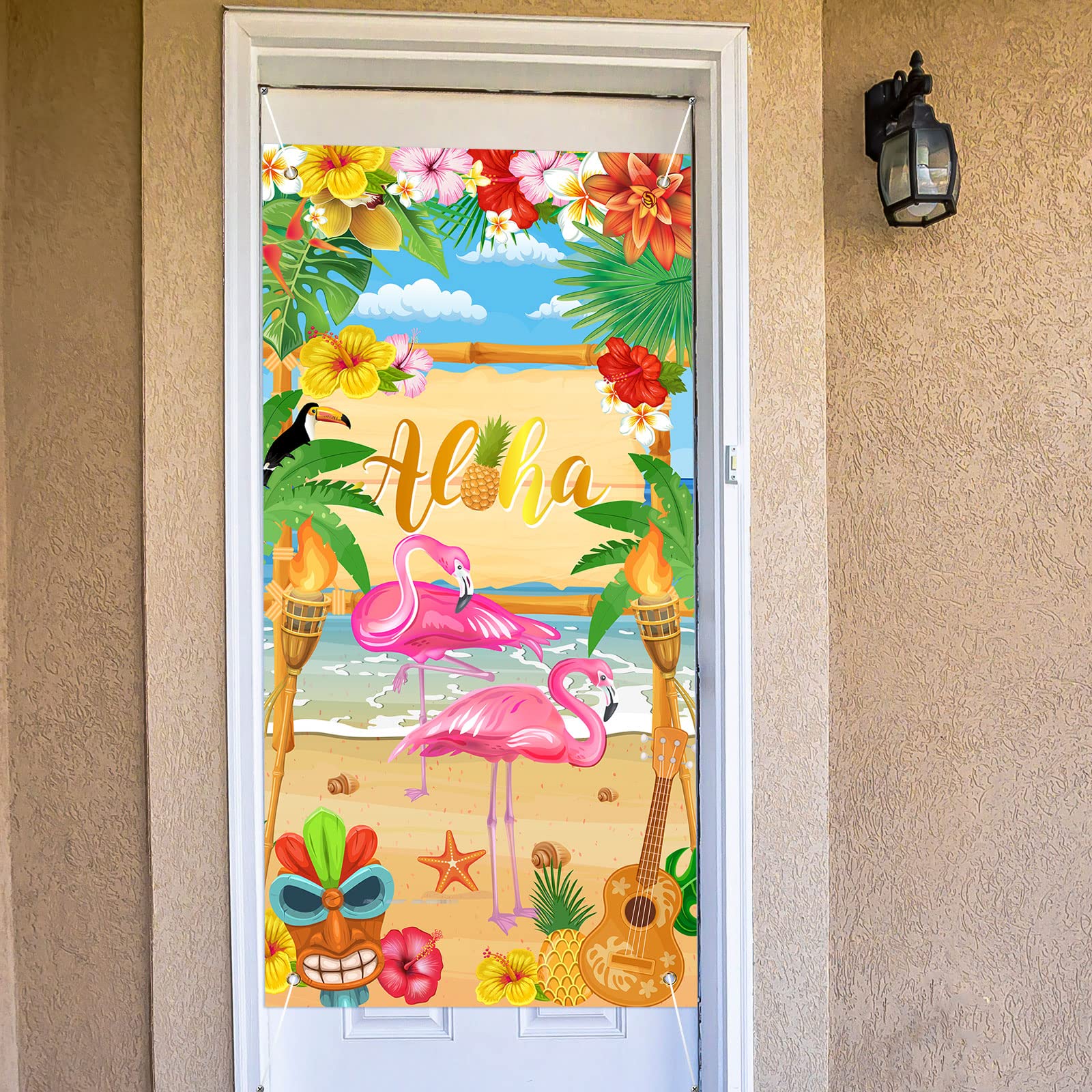 Rtteri Aloha Party Decorations Hawaiian Door Cover Sign Summer Luau Beach Supplies Party Door Banner Tropical Tiki Party Backdro