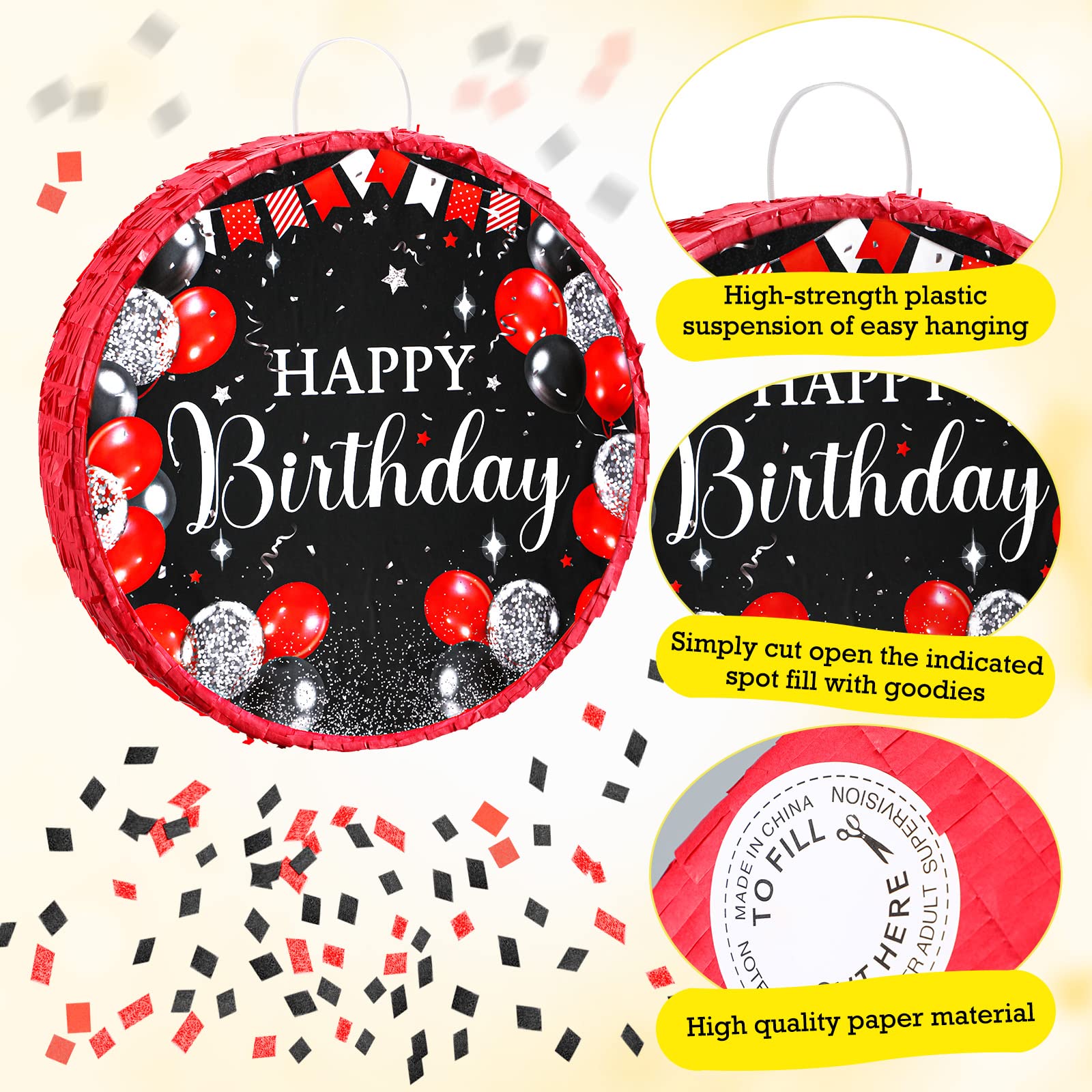Sinmoe Birthday Piata with Stick Blindfold and Confetti for Boys Girls Men Women Birthday Party Supplies(Red and Black)
