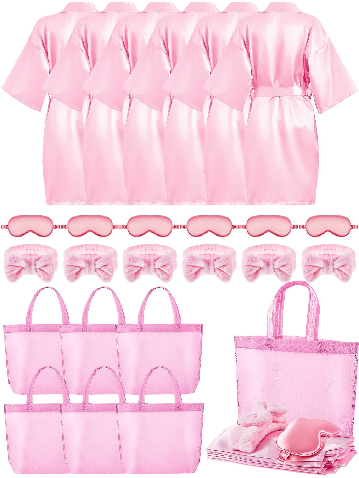 Sintuff 24 Pcs Sleepover Party Supplies For Girls 6 Spa Party Robes 6 Tote Bags 6 Headbands 6 Spa Masks(Size 10,Pink)