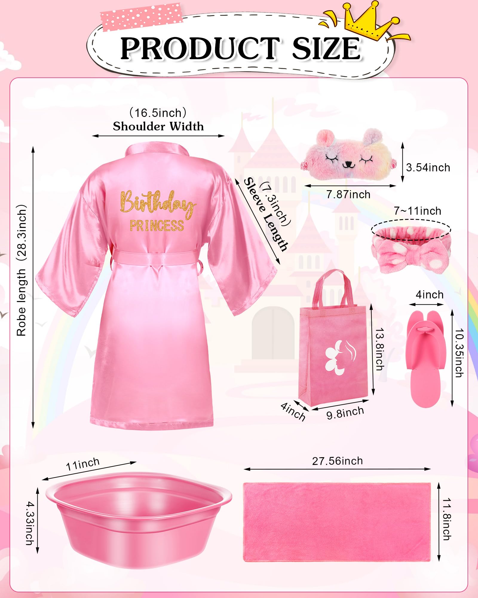 Suhine 6 Set Spa Party Supplies For Girls, Kids Satin Robes Nail Salon Kit Spa Kit Accessories For Birthday Party Favors (Cute C