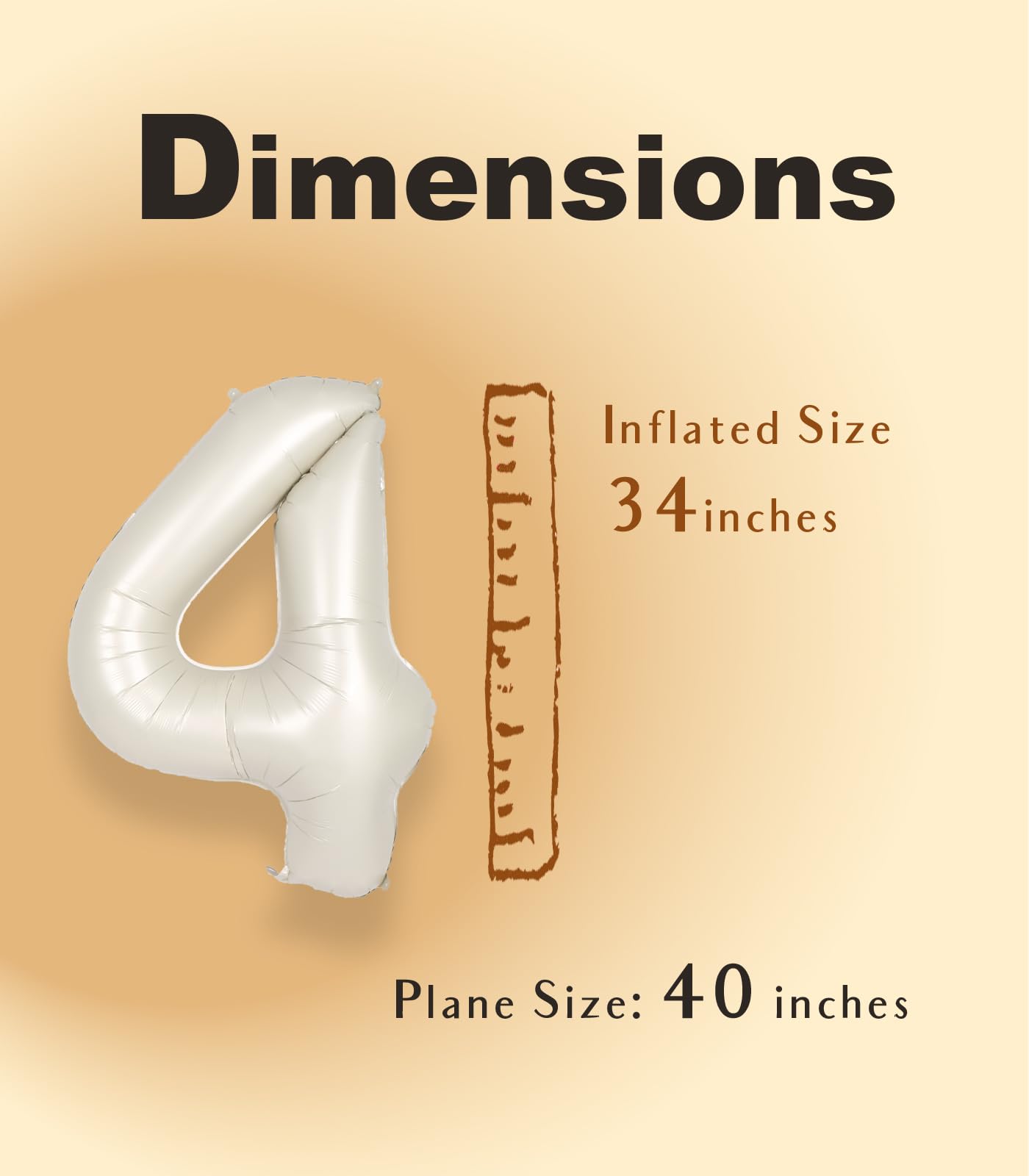 Suwen Cream White 40 Inch Number Balloon 4, Safe Material, Jumbo Birthday Party Decorations For Boy Or Girl Anniversary Supplies