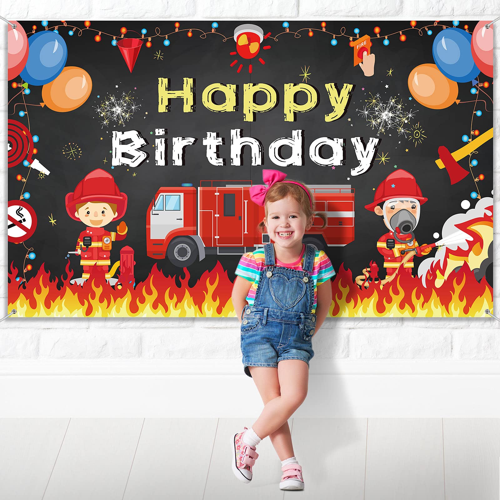 Firetruck birthday party supplies decorations firetruck theme backdrop background banner photo booth cake table decor for boys girls children kids. Feature: Easy to use. Huge and stunning. Bright and adorable pattern. Durable and reusable. Specifications: Size: about 71 x 43 inches Material: polyester fabric. Color: as shown in the picture Package includes : 1 x firetruck birthday backdrop, 1 x long ribbon Notes: Please allow slight deviation in size due to manual measurement. Please allow slight color differences due to different monitors and light effects. Winding risk may exist, please keep away from children.