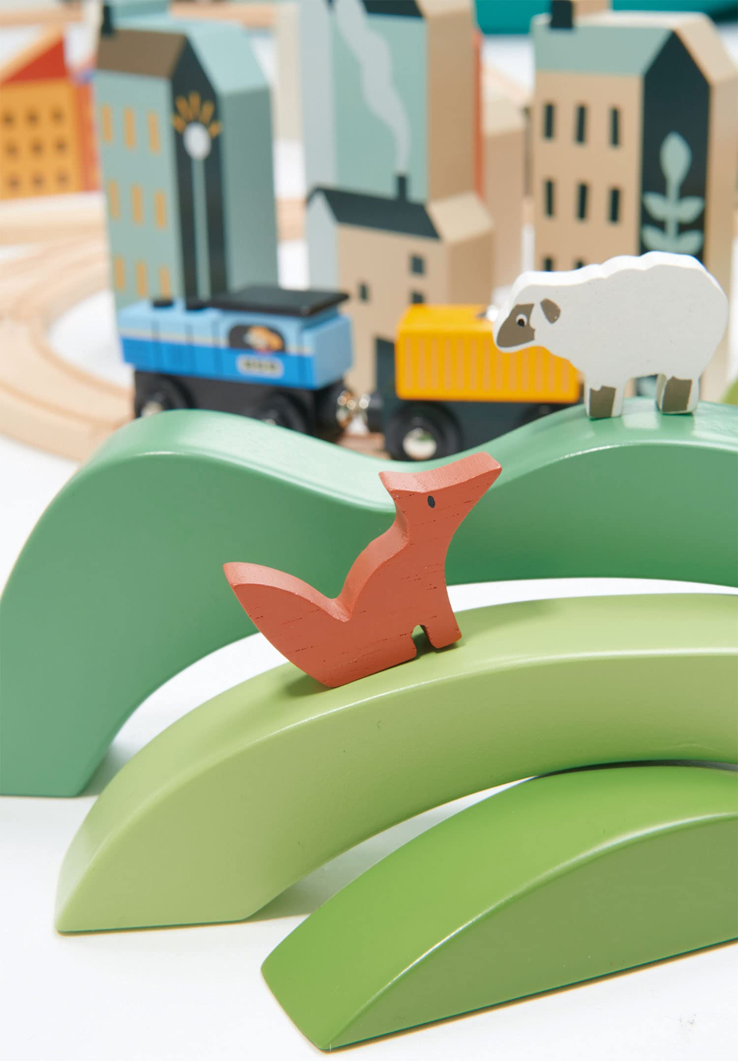 Perfect for displaying your animals, three green solid wood hills that can be used as part of open-ended play. Included are a fox and a sheep. Age range: 3 Years And Older Product size: 9.37 x 3.54 x 3.03' Weight: 0.68 lbs