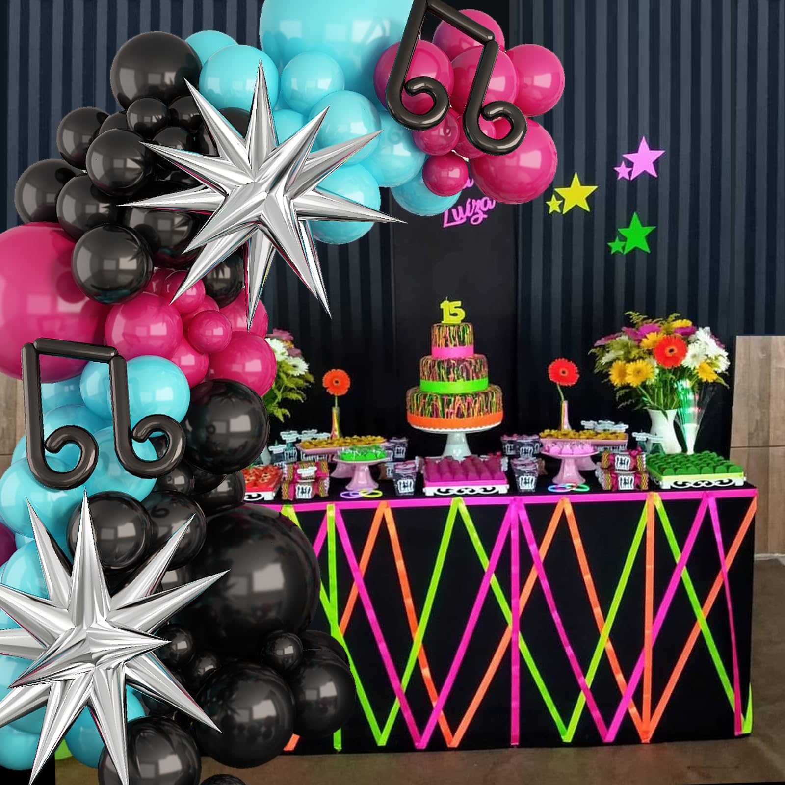 View compareTik Music Birthday Party Decorations,Rose Red Blue Black Balloon Garland With Explosion Star Foil Balloons For Music Hip Hop Theme Birthday Graduation Party Supplies