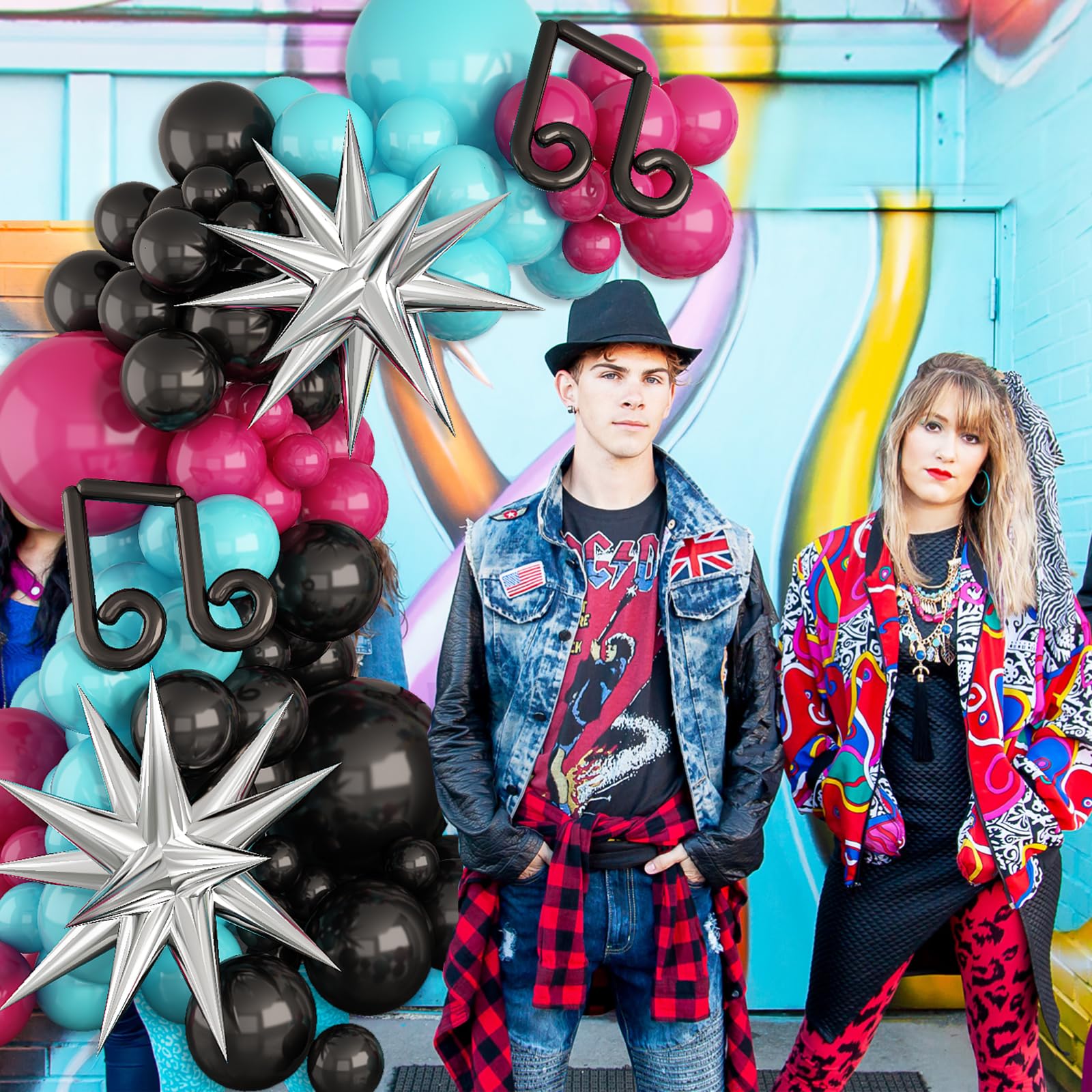 ?Music Notes Balloons Arch?Our Balloon Garland Kit Contains:3 X 18Inch Balloons (Hot Pink*1,Black*1,Blue*1) , 55 X 10Inch Balloons(Hot Pink*20,Black*15,Blue*20), 45 X 5Inch Balloons (Hot Pink*15,Black*15,Blue*15), 3Pcs Black Stripe Balloon,2Pcs Starburst Balloons,Balloons Strip 1Pc, Adhesive Tape 3Pcs,Ribbon 1Pc. | ?Premium Material? Our Balloons Are Made Of Natural Latex.Each Of These Latex Balloons Is In A Brighter Color And 20% Thicker Than Normal Latex Balloons.Safe To Be Used For Children.Tiktok Theme Party Supplies Will Be Your Perfect Party Decorations. | ?Wide Application?This Hot Pink Black Balloons Kit Suits A Wide Scene, Boys Girls Birthday Party, Baby Shower, Karaoke Party.They Are Perfect For Balloons Bouquet, Floral Arrangements, Home And Table Decor, Photo Shoots, Party Games Etc.This Rose Red Blue Balloon Arch Will Add The Best Appearance To Your Party. | ?Easy To Use?The Hot Pink Blue Balloon Arch Is Very Easy To Assemble, Just Inflate The Balloons, Then Stuff The Knot Into The Hole Of The Balloon Arch Chain. You Can Hang Them On Trees, Walls, Windows, Doorways, Dining Tables And Anywhere You Like. It Will Be A Funny Family Craft To Diy With Your Family! Hope You Enjoy The Fun Of Diy. | ?Feel Secure With Your Purchase?If You Encounter Any Problems, Please Feel Free To Contact Us, We Promise We Will Provide You With A Satisfied Solution.