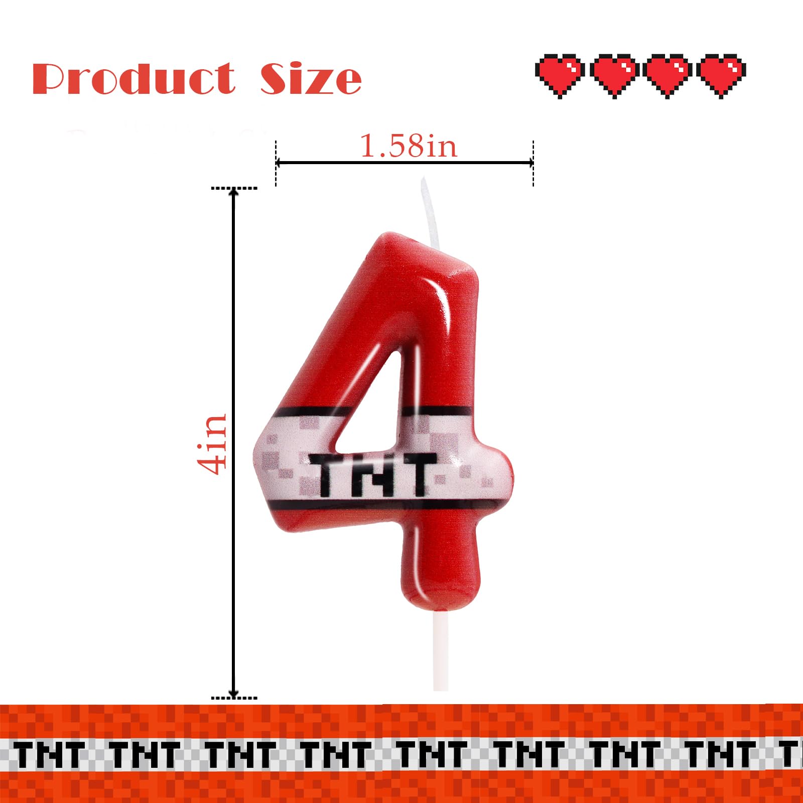 TNT Themed Birthday Candles for Boys Girls, Craft Pixels Cake Topper, Kids Themed Birthday Party Supplies (Number 4-Red)