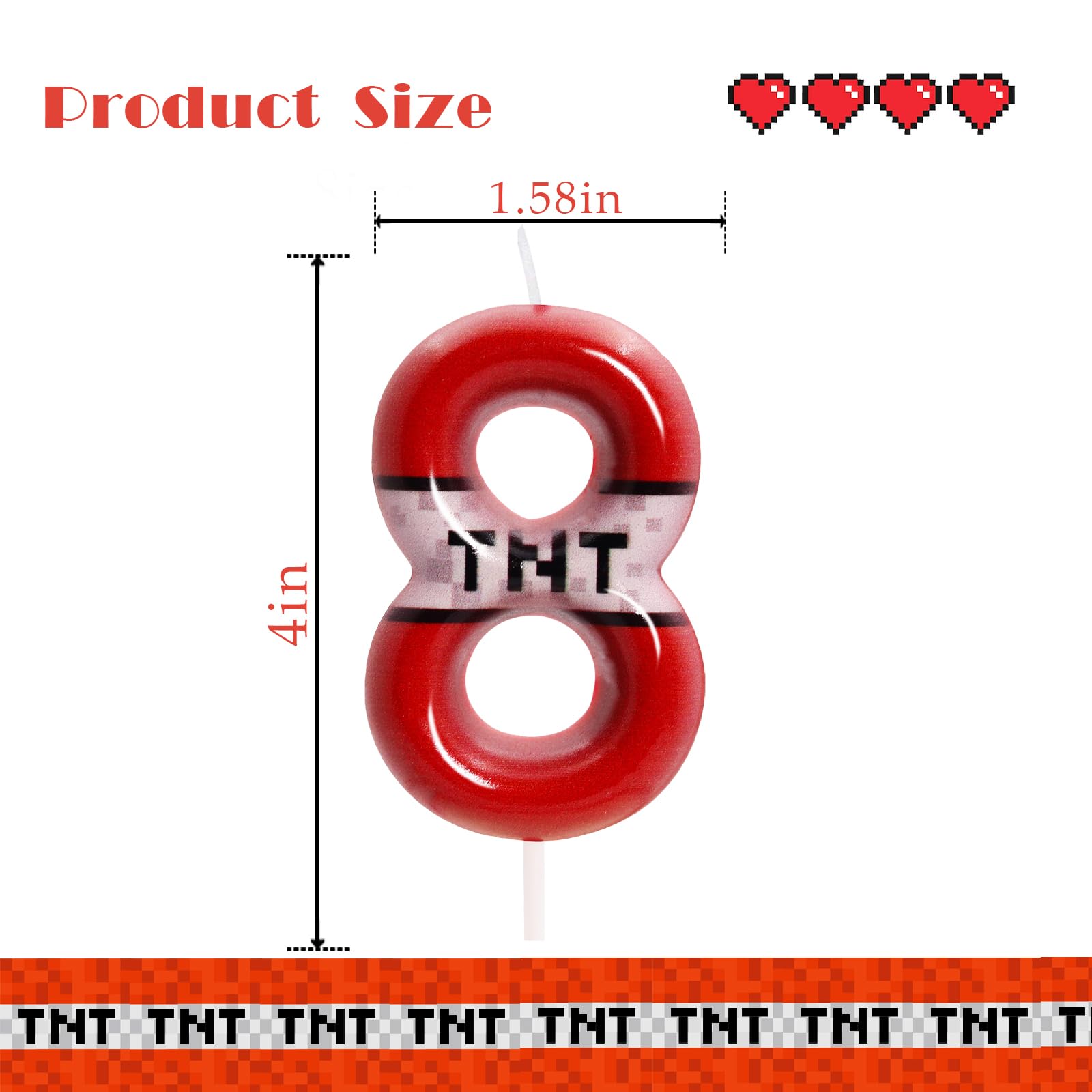 TNT Themed Birthday Candles for Boys Girls, Craft Pixels Cake Topper, Kids Themed Birthday Party Supplies (Number 8-Red)