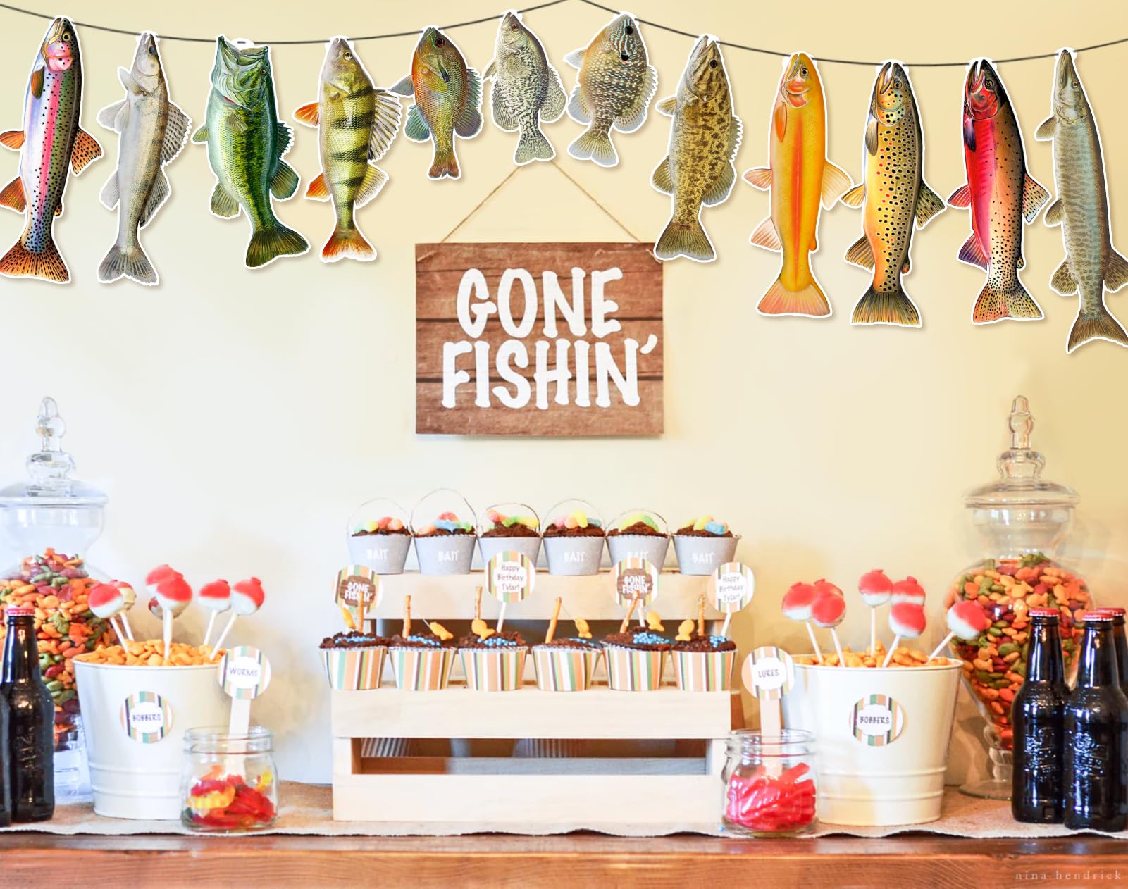 Ushinemi Fishing Birthday Decorations, Gone Fishing Party Supplies Sunfish Trout Bass Fishing Banner For Adults And Kids