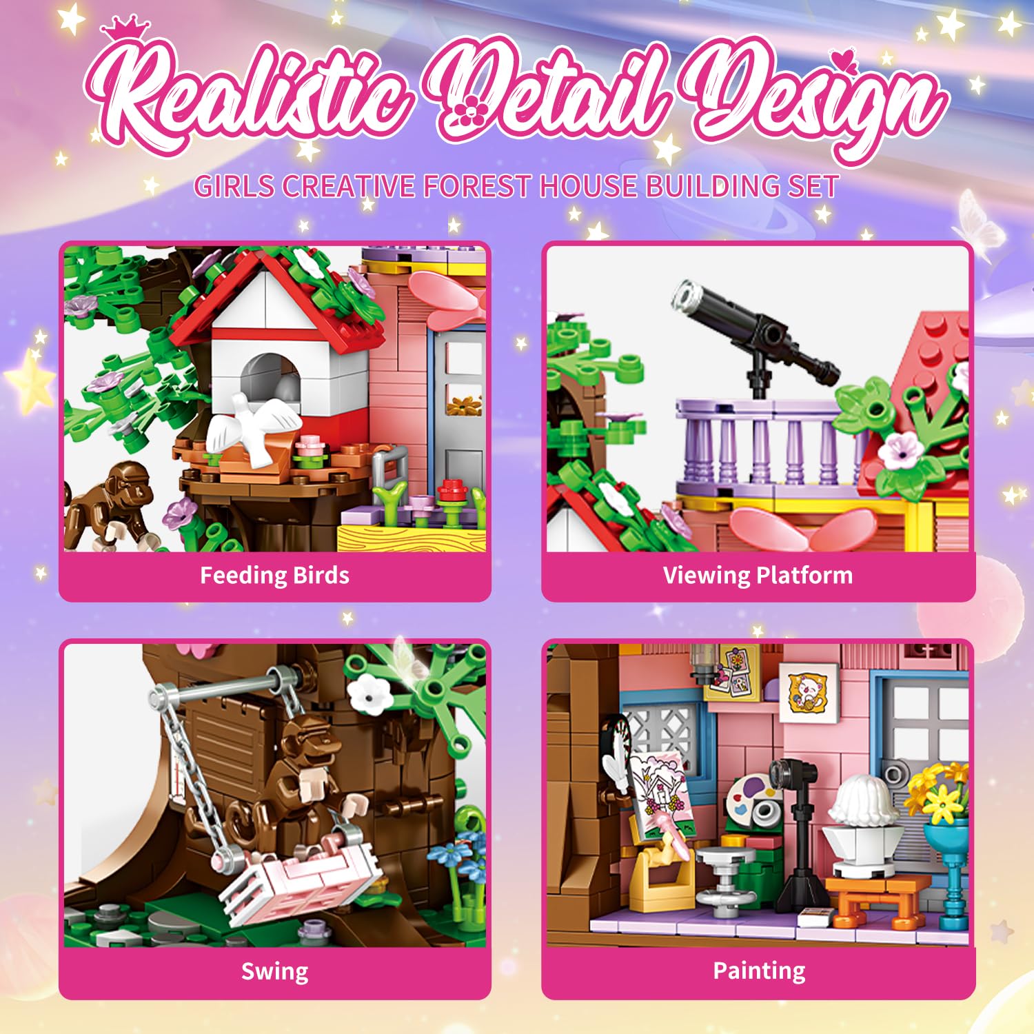 Wingift 840 Piece Tree House Building Sets,Girls Creative Forest House Building Blocks Kit,Stem Friends Friendship Tree House With Swing Animals Flowers,Christmas Birthday Gifts For Girl Boy Age 6-12+