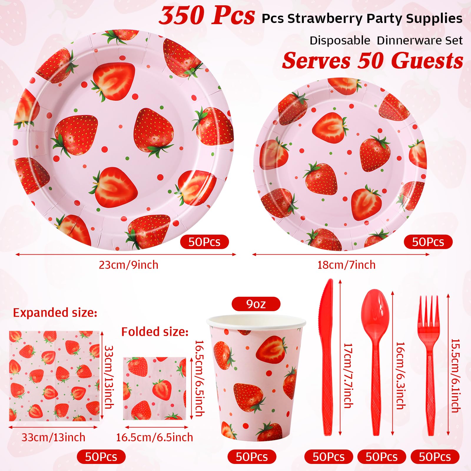 Ziliny 350 Pcs Strawberry Party Supplies Tableware Set Disposable 9 7 Paper Plates 9 oz Cups Cutlery Napkins Dinnerware