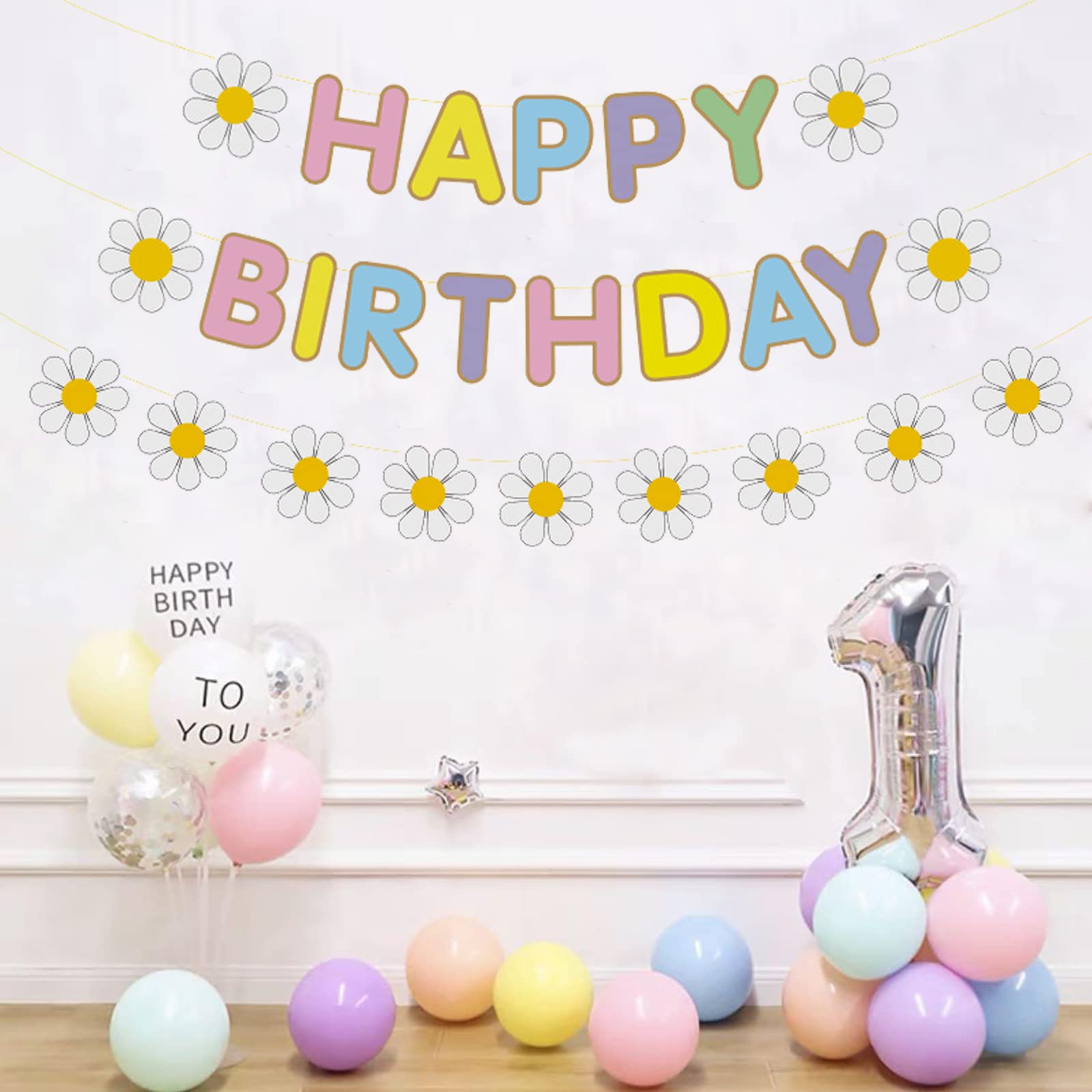 View compareZwiebeco Macaron Daisy Birthday Party Decoration Supplies - Macaroon Little Daisy Happy Birthday Sign Banner Bunting Garland Han