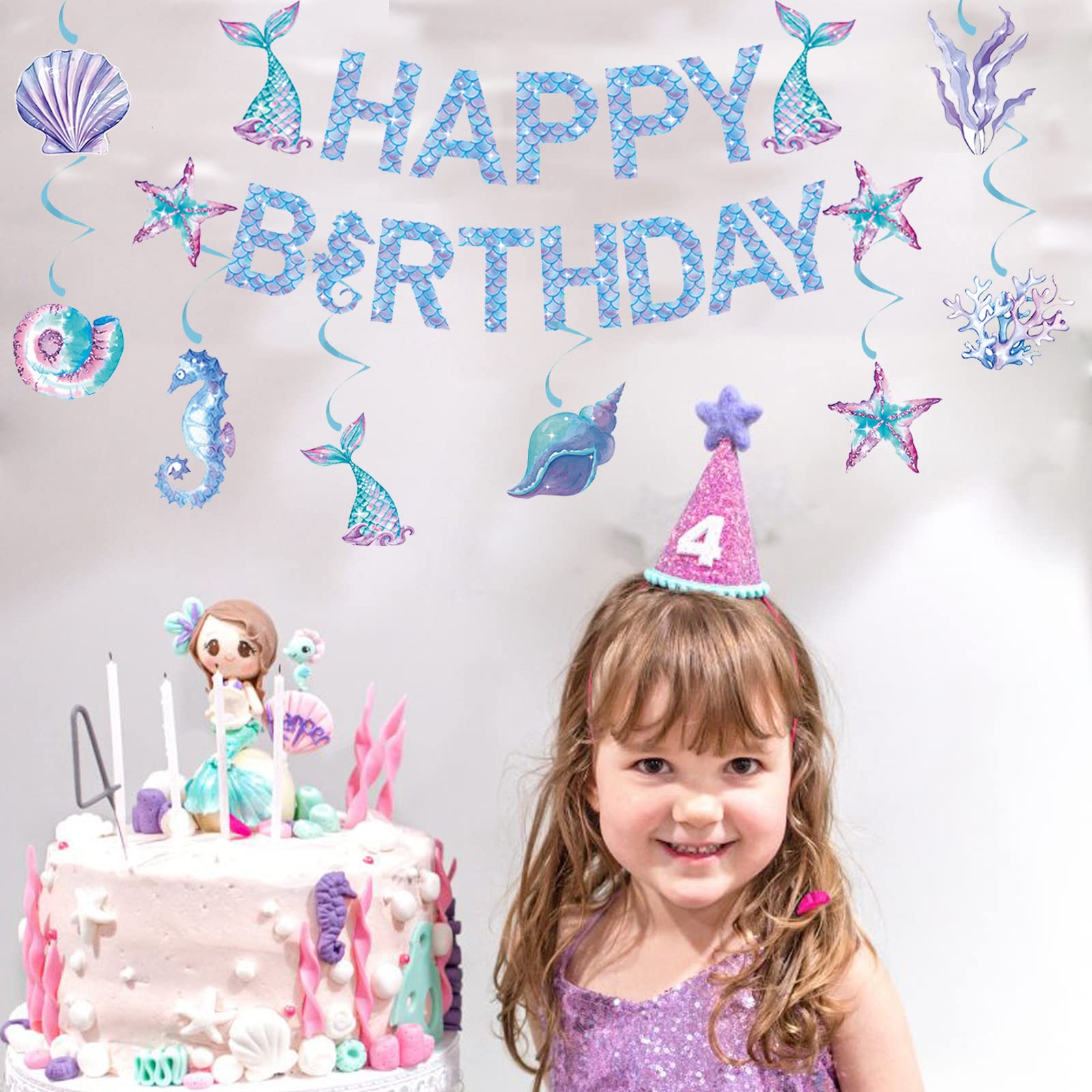 Zwiebeco Mermaid Happy Birthday Banner Bunting Garland Hanging Swirls Party Decoration Supplies Kit Package Contains: 1 Mermaid Happy Birthday Banner, 2 White Strings (Each String Is 3M/9.8Ft, Total 6M/19.6Ft), 1 Threading Needles 8Pcs Hanging Swirls (8Pcs Different Undersea Element Puatterns, Likes Mermaid Tail, Seaweed, Sea Flower, Starfish, Seahorse, Conch, Shell) Applicable Occasions: Mermaid Themed Birthday Party Decorations Under The Sea Themed Birthday Party Decorations The Little Mermaid Theme Birthday Party Decorations Kids Birthday Party Decorations Girls Birthday Party Decorations Womens Birthday Party Decorations Babys Birthday Party Decorations Home Birthday Party Decorations School Birthday Party Decorations Classroom Birthday Party Decorations Office Birthday Party Decorations Warm Tips: 1. Diy Needed. 2. Due To Manual Measurement, There May Be Slight Errors In Product Size. 3. Due To Different Screen Monitors, There May Be Slight Differences In Color.