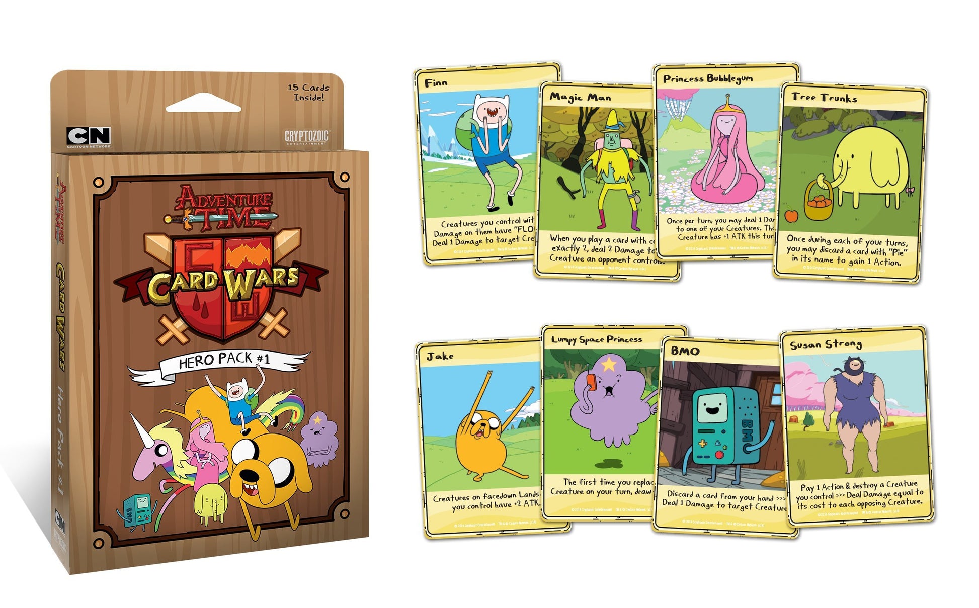 Enture Time Card Wars game is about to get personal! Now play AS your favorite character from the show: Finn, Jake, BMO, Lady Rainicorn, Princess Bubblegum, Lumpy Space Princess, Cosmic Owl, Tree Trunks, Billy, and many more. Your new in--game persona also grants you a special ability that will work wonders with the decks from the Collectors Packs, or your own customized decks. Hero cards sit next to the battlefield and can affect play each and every turn. Your games will take on new life with a Hero card by your side, powering your way to victory and Cool Guy status! .