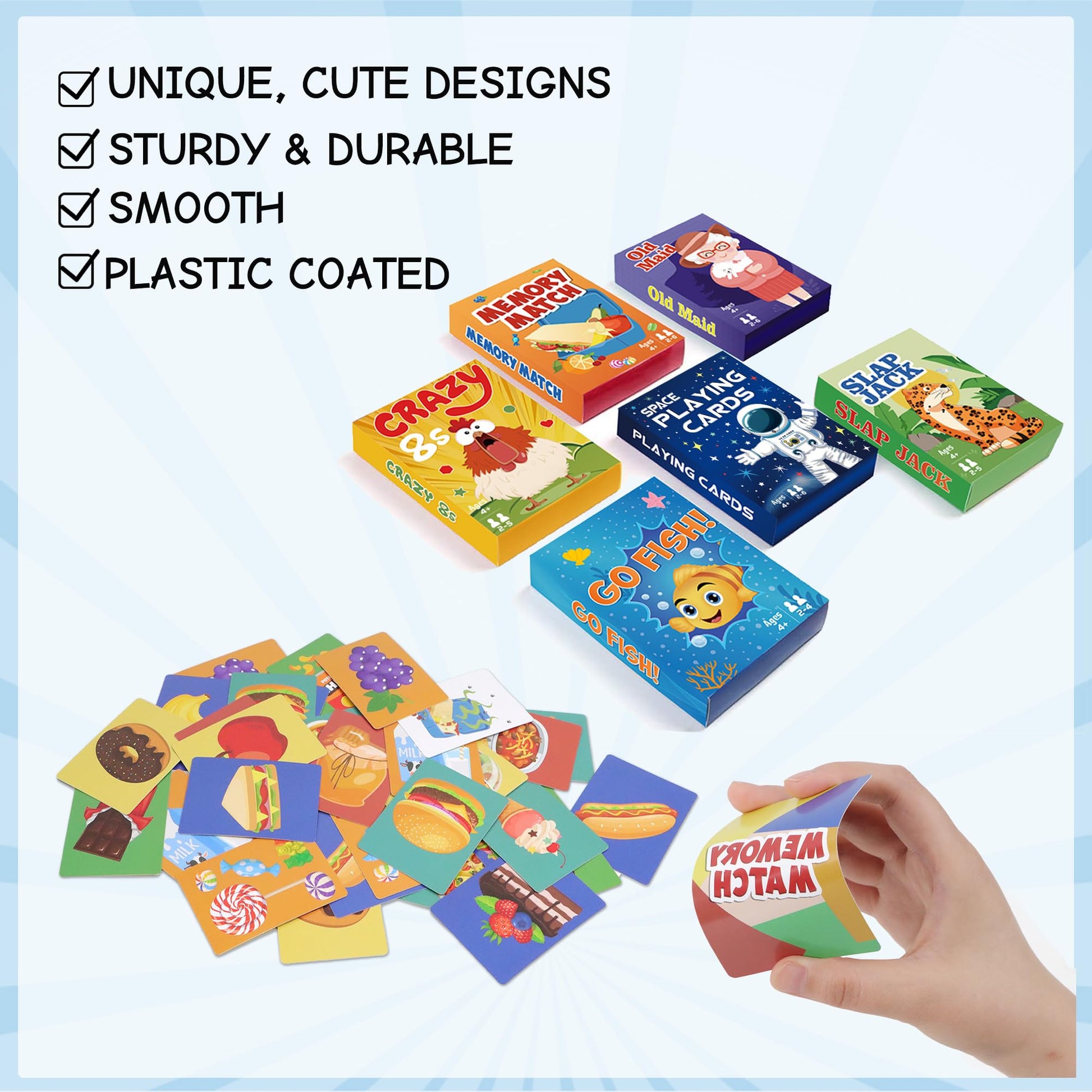 Card Games,6 Decks,Go Fish,Old Maid,Crazy 8S,Memory Match,Slap Jack,Space Playing Cards,Fun Game Cards For Kids Toddlers And Adu