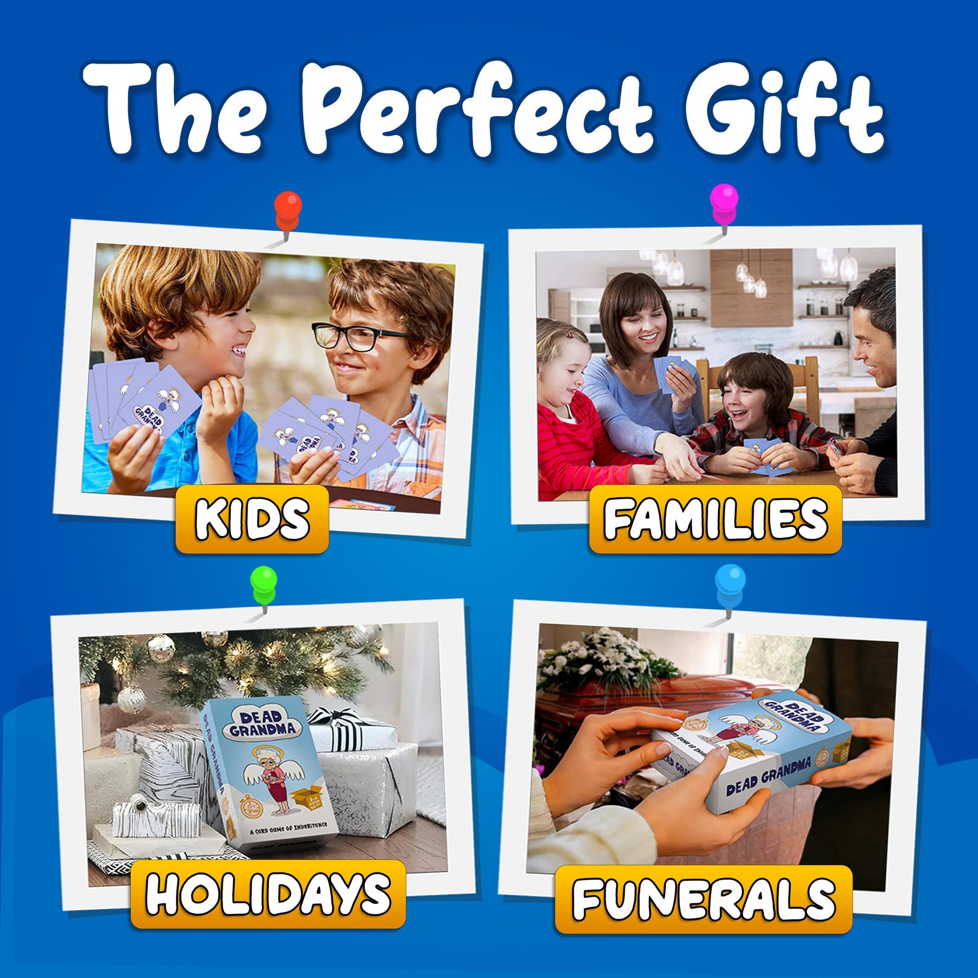 - Q: What makes Dead Grandma a great gift? A: Dead Grandma is an ideal gift for various occasions, including Christmas, birthdays, and even humorous events like funerals, as it sparks laughter and conversation among players.
