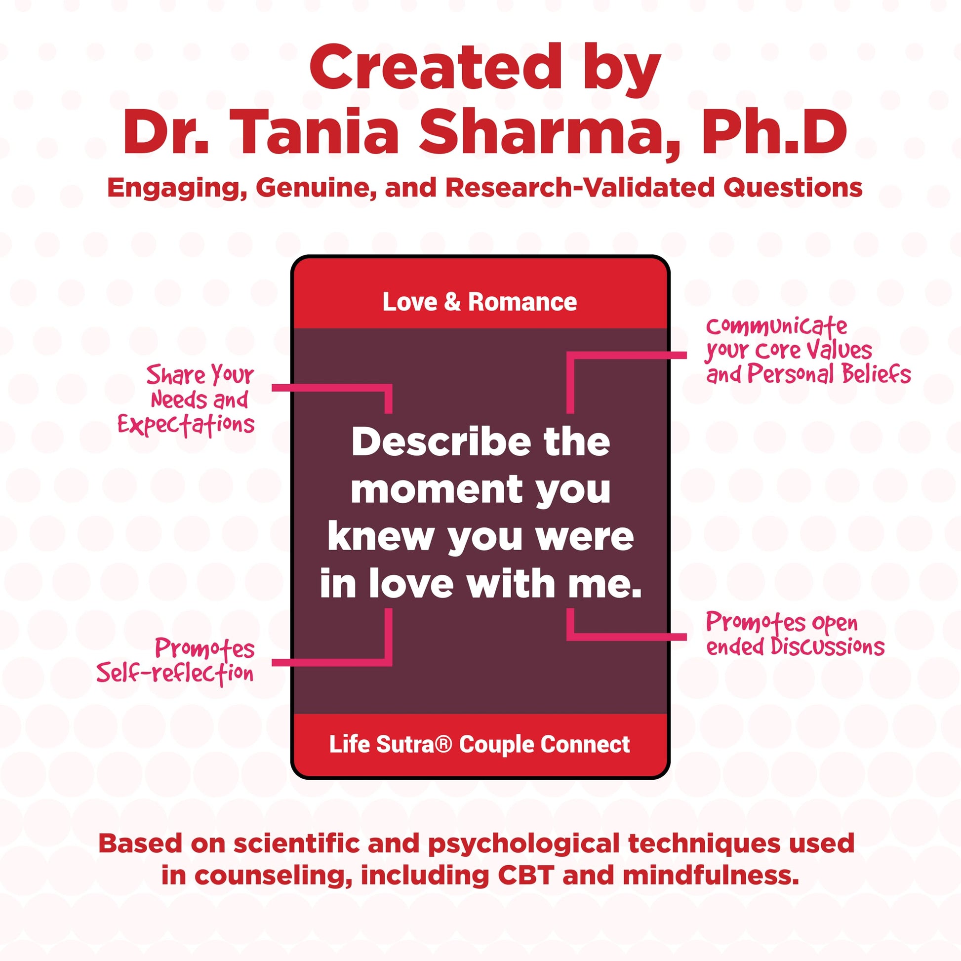 - Q: What is the Life Sutra Couple Connect Game and how does it work? A: The Life Sutra Couple Connect Game is a portable conversation card game designed for couples. It features 150 engaging questions and challenges that help deepen your connection through meaningful conversations. Simply pull a card and discuss the question or complete the challenge with your partner, making it perfect for both stay-at-home date nights and travel.