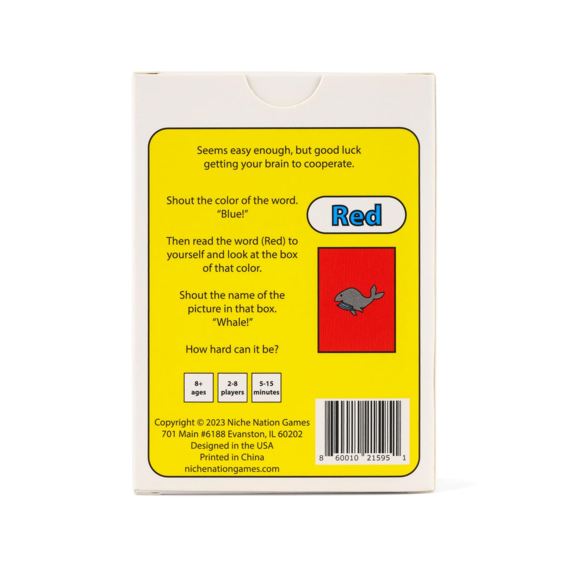 The Rules May Be Simple, But Good Luck Getting Your Brain To Cooperate. Based On A Psychological Quirk Known As The ''Stroop Effect'', Watch The Hilarity Ensue As Players Struggle To Say Two Simple Words And Slap The Card Pile At The Right Time. Fun For Ages 8-99 And All Occasions Including Family Game Nights, Holiday Gatherings, Work Parties, Camping Trips, And More!