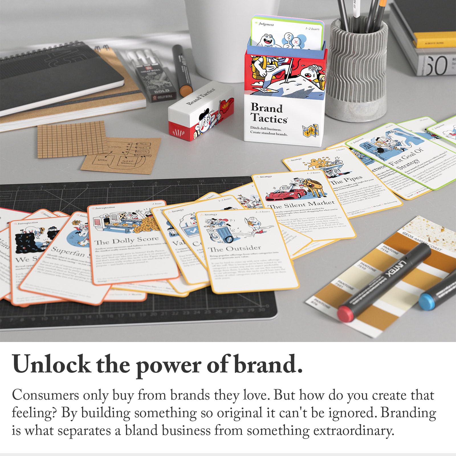 - Q: How can the Brand Tactics Cards improve my branding strategy? A: These cards provide ready-to-use templates, challenges, and experiments that guide you in honing your brand values and crafting a coherent marketing plan that stands out in the marketplace.