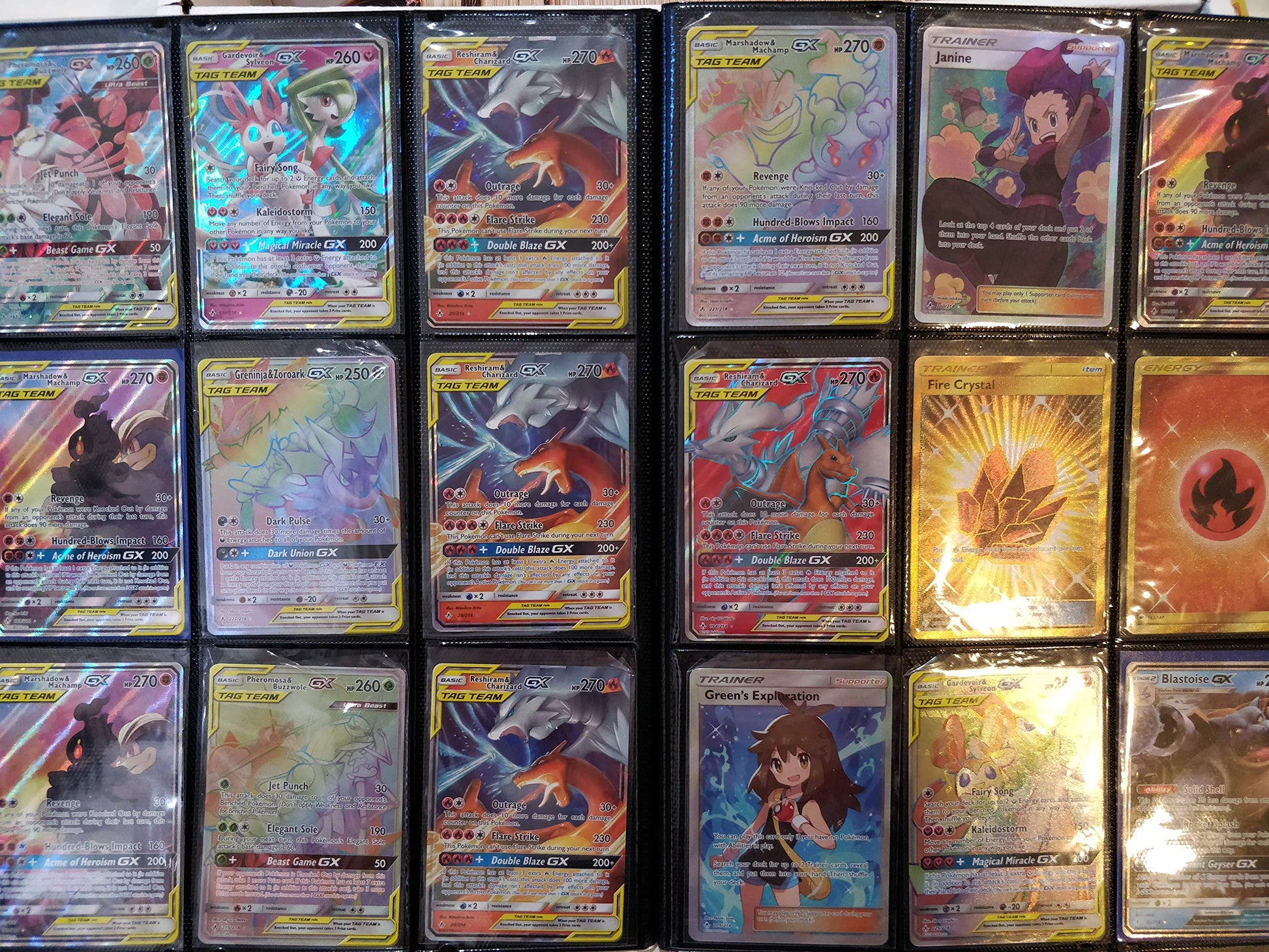 Inlcudes 100 (or more) pokemon cards including: 5 foils in any combination - holo rares, reverse holos, full arts. You receive at least 5 foil cards, and in addition at least one gx, ex, tag team, secret rares, GX, EX, Tag Team, and other such chase cards! But many lots include bonuses of up to 10 additional foil cards from the set! So the chances are endless, and you receive a compilation with tons of different cards and content! We care about our customers, and as such, we always ship our products with the absolute best care and consideration in mind! All of your foils will be in sleeves, and all of the gx/ex/tag team/chase cards will be in sleeved as well. In addition, we ship in bubblewrap envelopes, wrapped in additional bubblewrap, for your orders maximum protection! Please note that a binder is not included in this lot.
