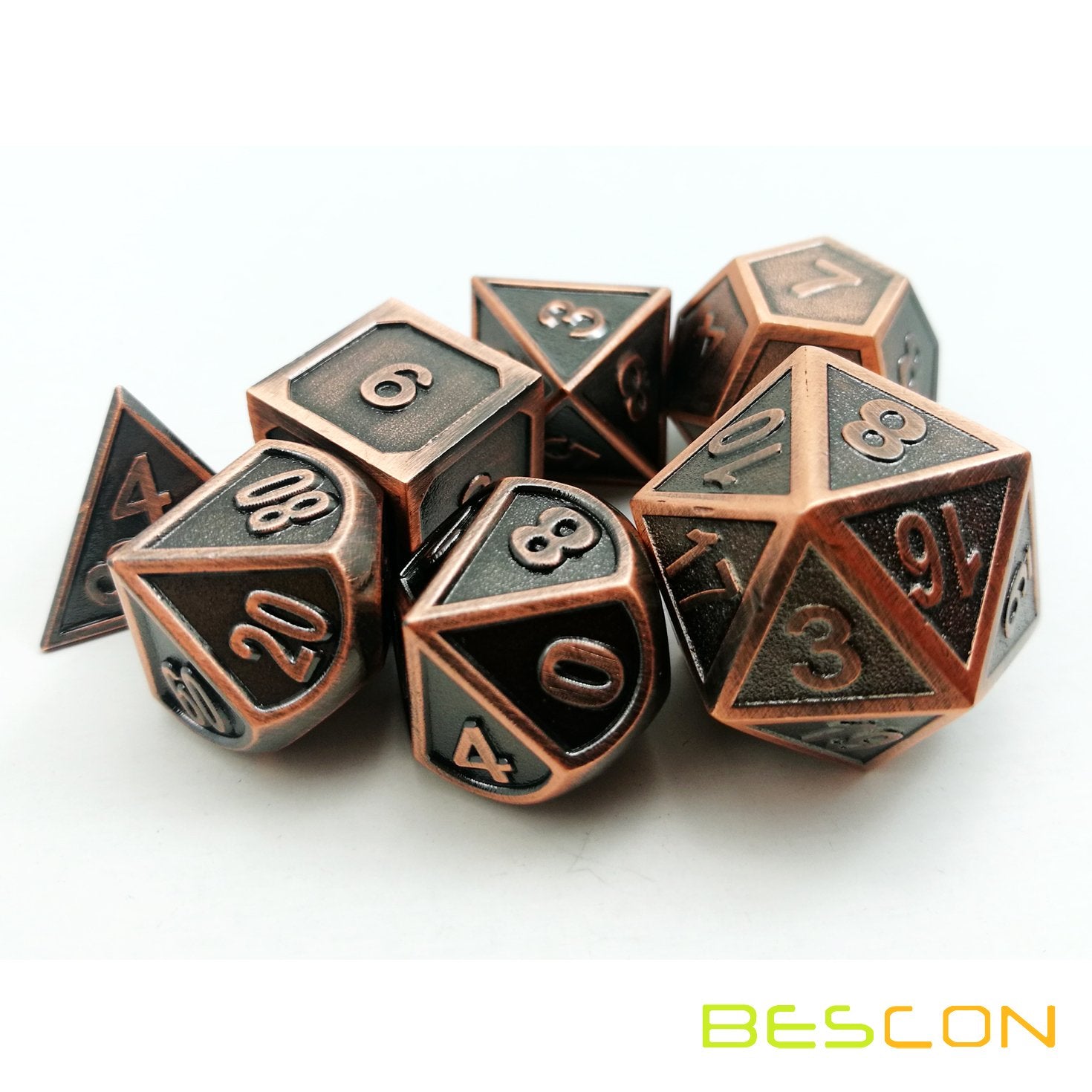 View compareBescon Antique Copper Solid Metal Polyhedral Dice Set of 7 Copper Metallic RPG Role Playing Game Dice 7pcs Set D4-D20