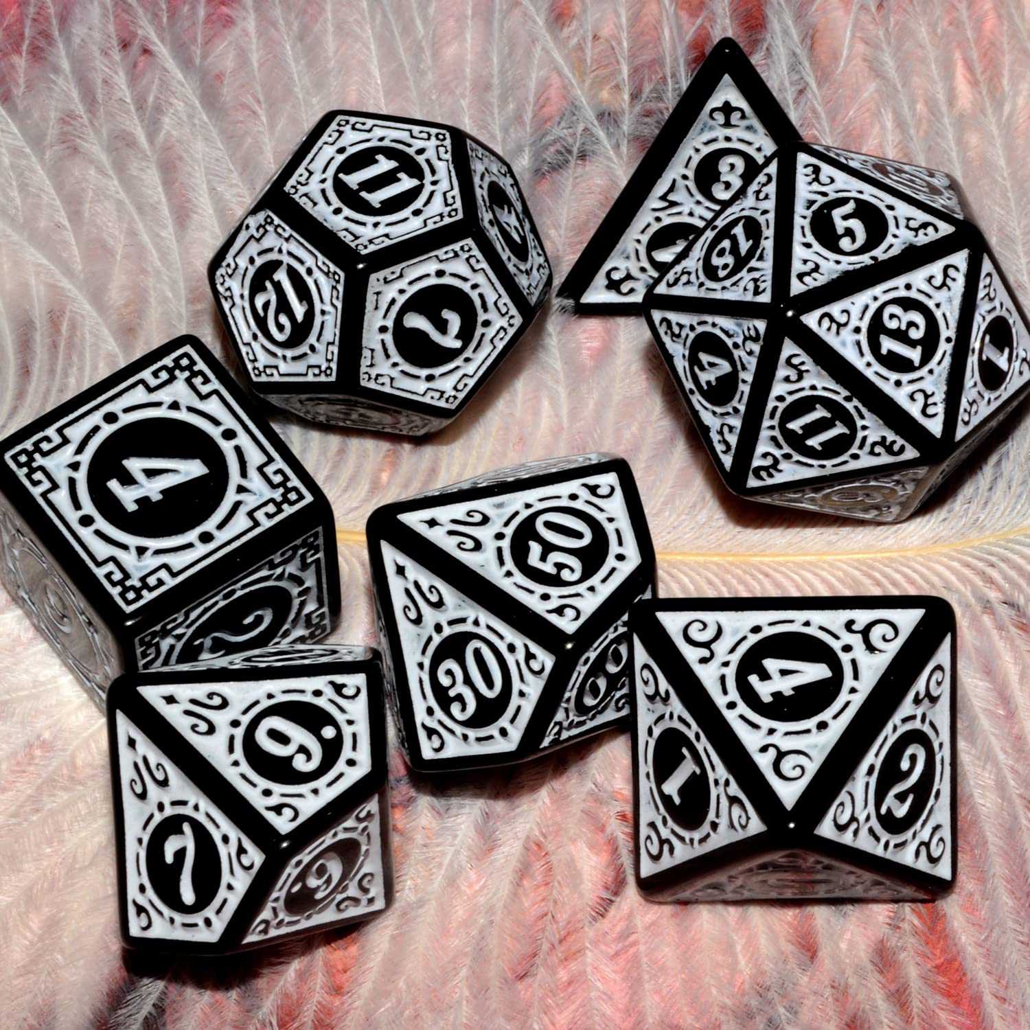 - Q: What games can I use the Carving in White Black DND Dice Set for? A: The Carving in White Black DND Dice Set is ideal for a variety of tabletop games, including Dungeons and Dragons, Magic the Gathering, Pathfinder, and other role-playing games.