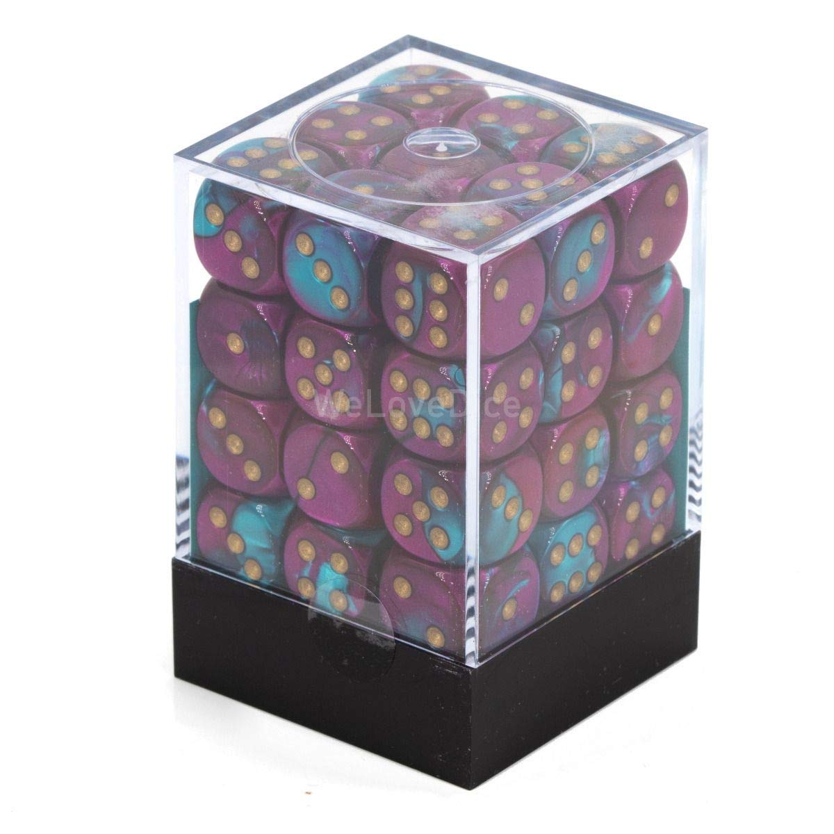 CHX26849 purple teal Gemini 12mm dice brick by chessex set of 36 12mm D6 dice.